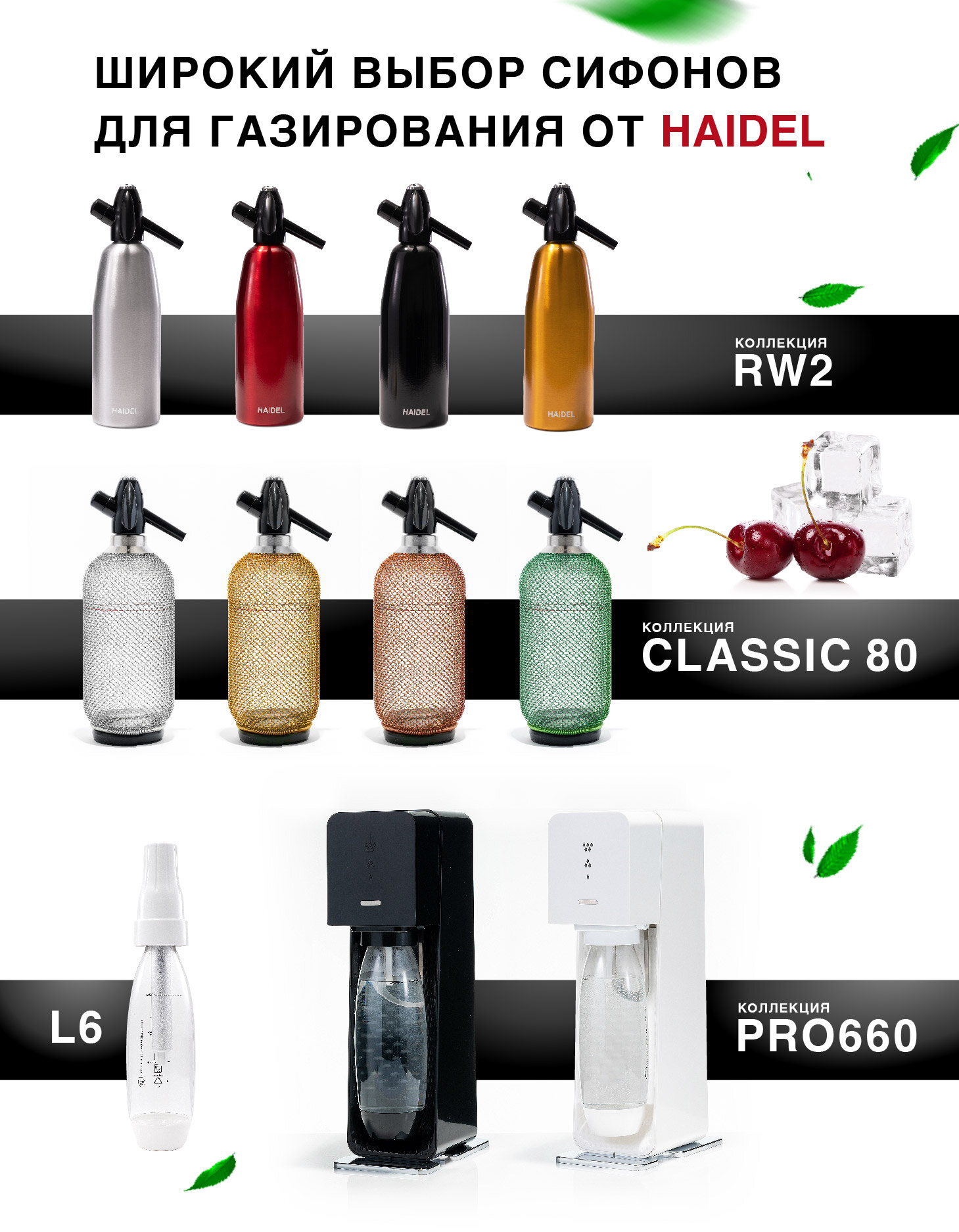 СохранитьСифон для газирования воды, стеклянный, 10 баллончиков + сироп для приготовления 5 л натурального лимонада, HAIDEL Classic 80, металлическая оплетка из нержавеющей стали интересное: