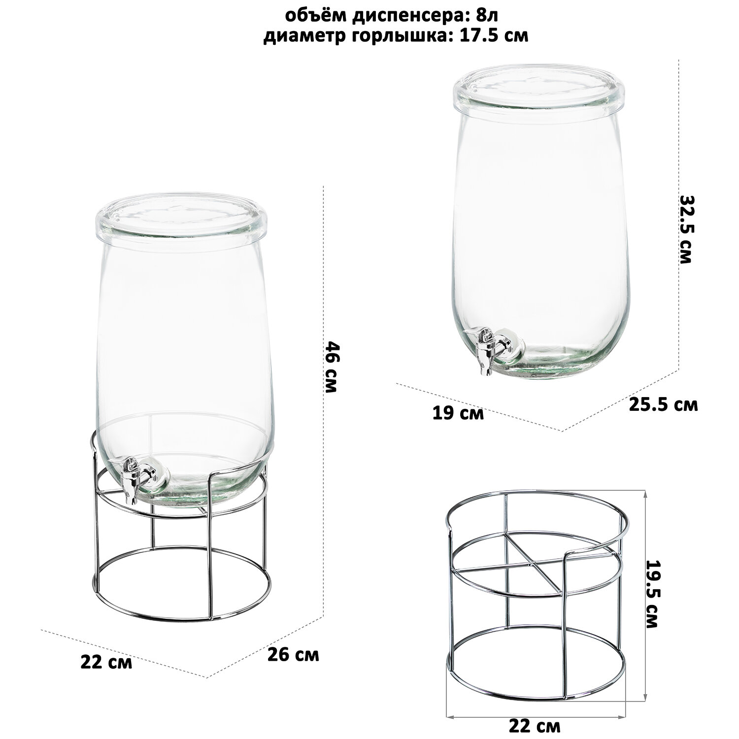 Диспенсер для холодных напитков с краном 8 л Elan Gallery "Glaskraft", 26х22х46 см, на металлической подставке интересное: