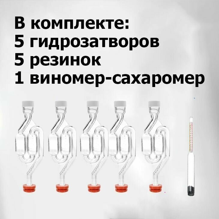 Гидрозатвор двухкамерный S-образный в сборе с резиновым уплотнителем (5 штук) + виномер-сахаромер интересное:
