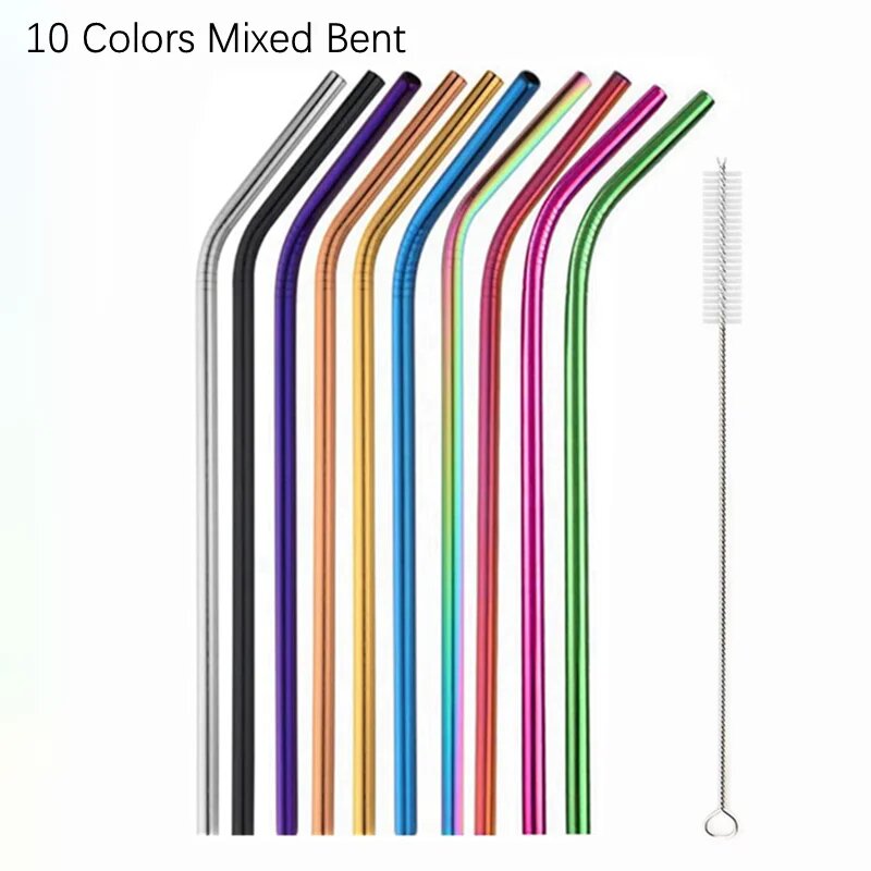 Набор из 10 металлических соломинок из нержавеющей стали, 5Color Mix Bent
