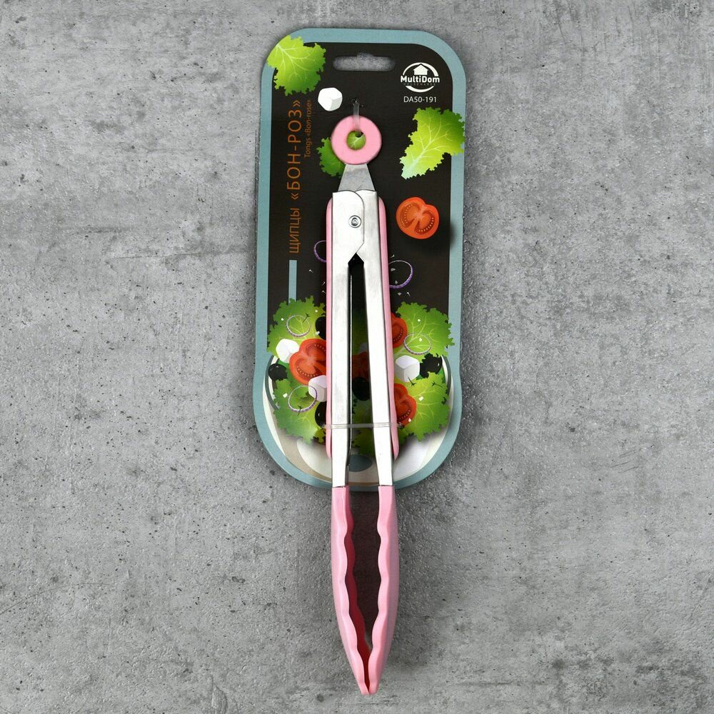 Щипцы "Бон-Роз", нержавеющая сталь и силикон, длина 26 см, цвет розовый. интересное: