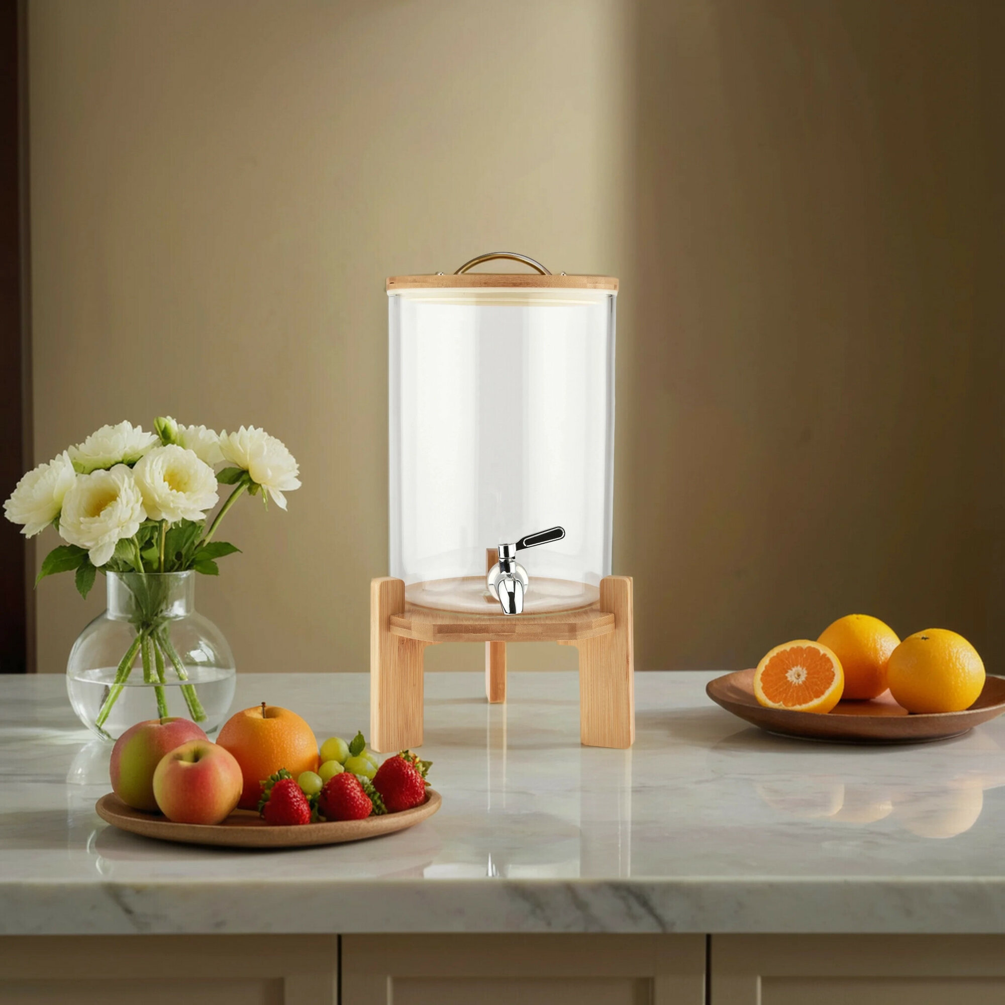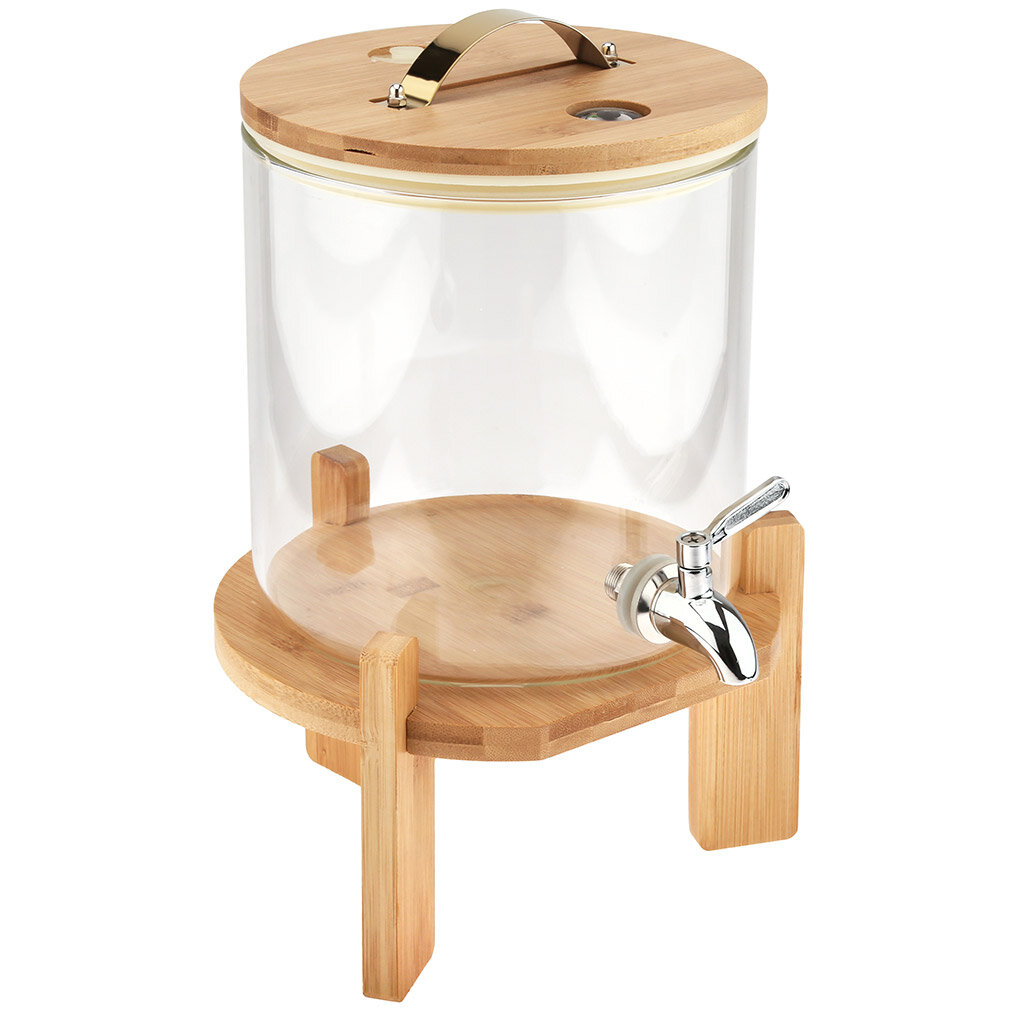 Купить Лимонадник стеклянный "Натурель" 5л, с крышкой, на подставке, бамбук, с краником