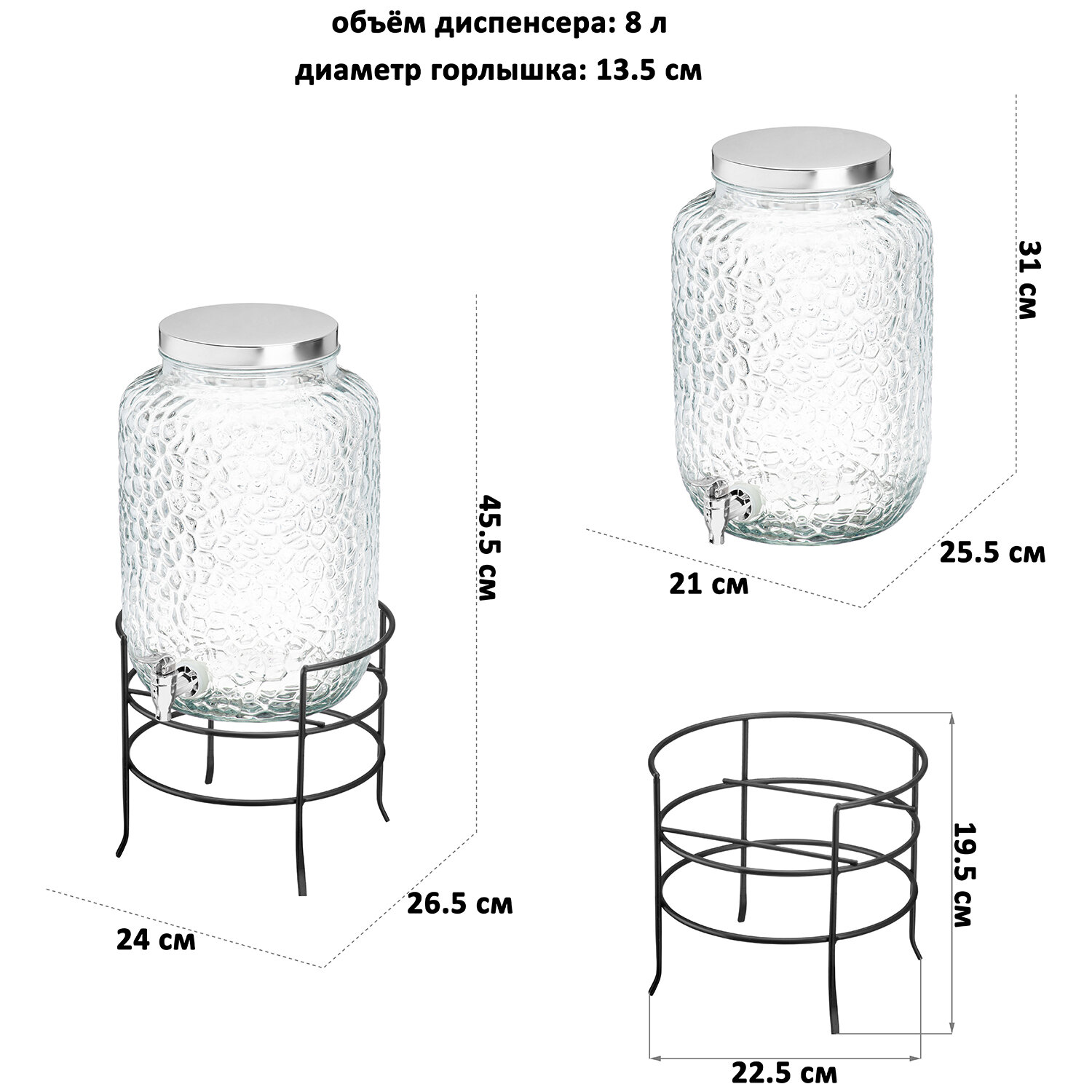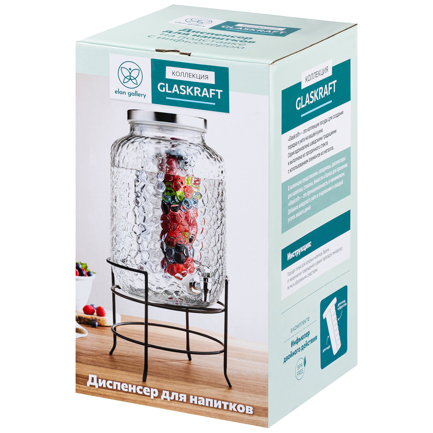 Диспенсер для холодных напитков с краном 8 л Elan Gallery "Glaskraft", 26,5х24х45,5 см, на металлической подставке интересное: