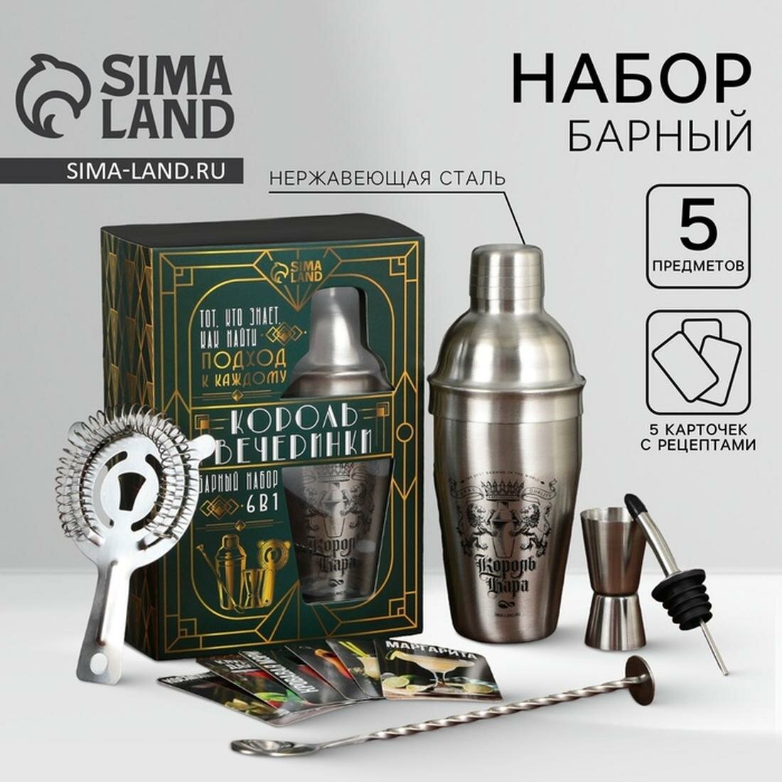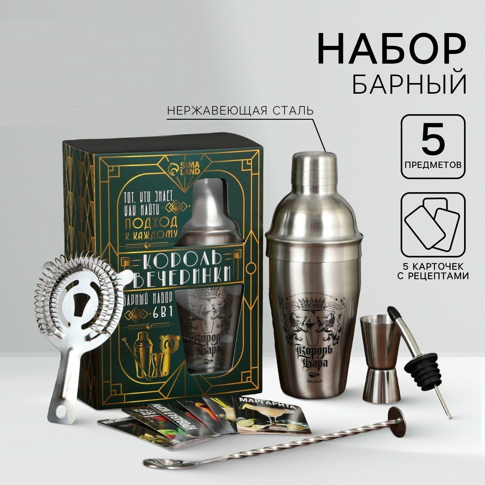 Купить Набор для приготовления коктейлей "Король вечеринки", 5 предметов, карточки с рецептами