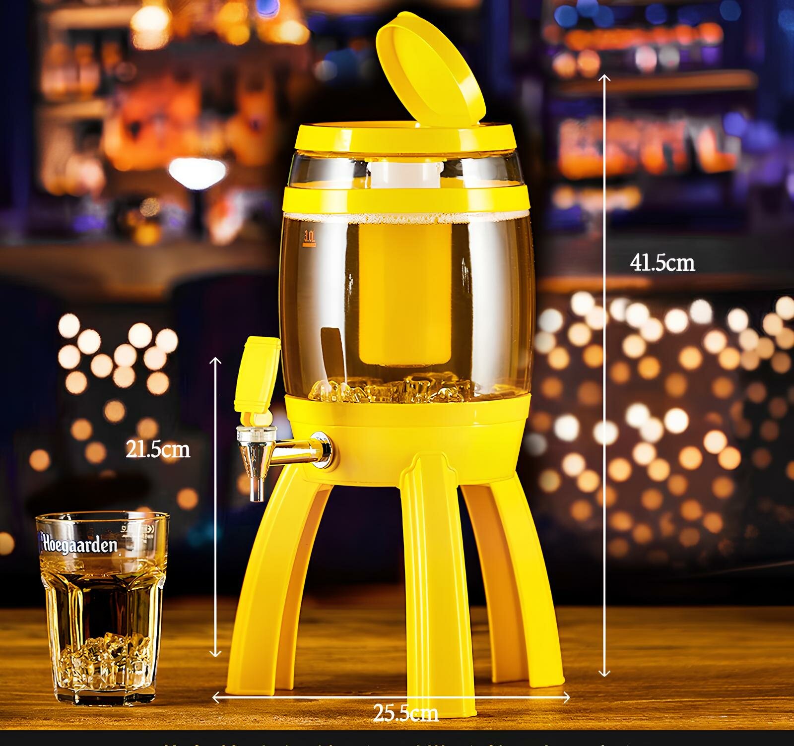 Купить Пивная башня "Бочка" с подсветкой и краном, объем 3 литра, цвет желтый