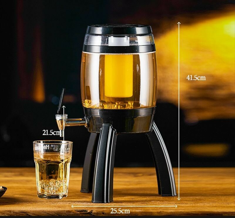Пивная башня "Бочка" с подсветкой и краном, объем 3 литра, цвет черный