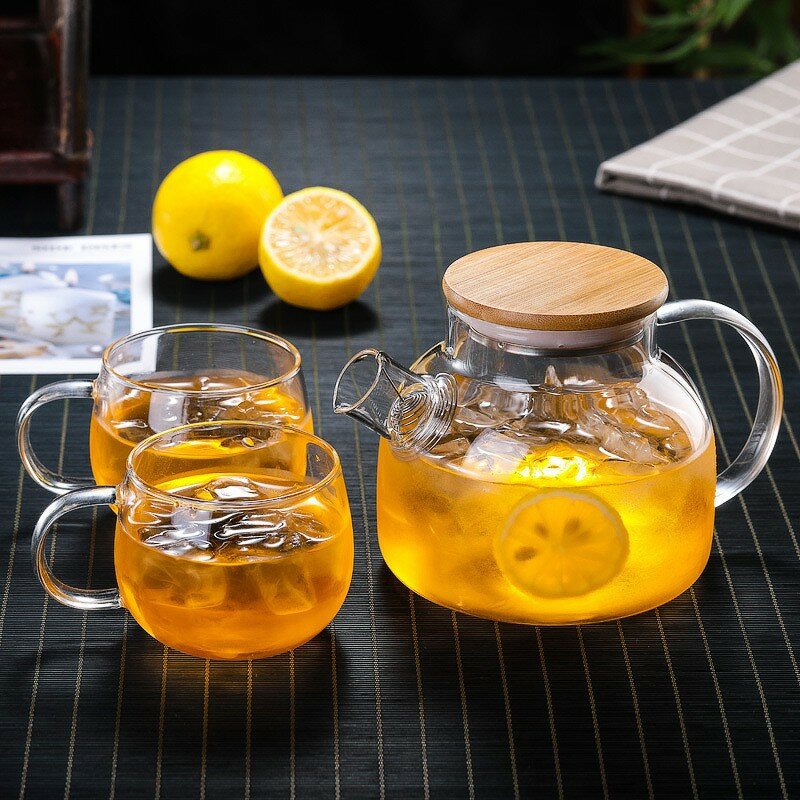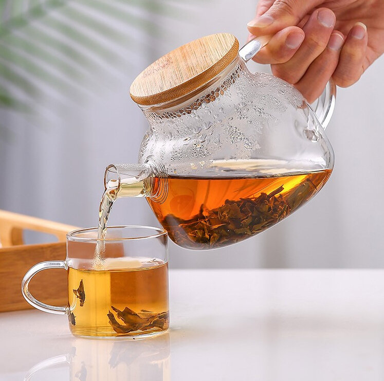 Купить Чайник заварочный стеклянный с бамбуковой крышкой и ситечком 1000 мл Vapaa
