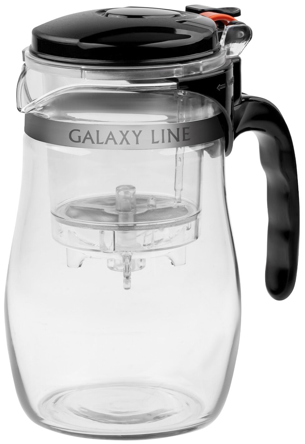 Купить Чайник заварочный GALAXY LINE GL9311, с фильтром, ситечком, черный, прозрачный, 800мл