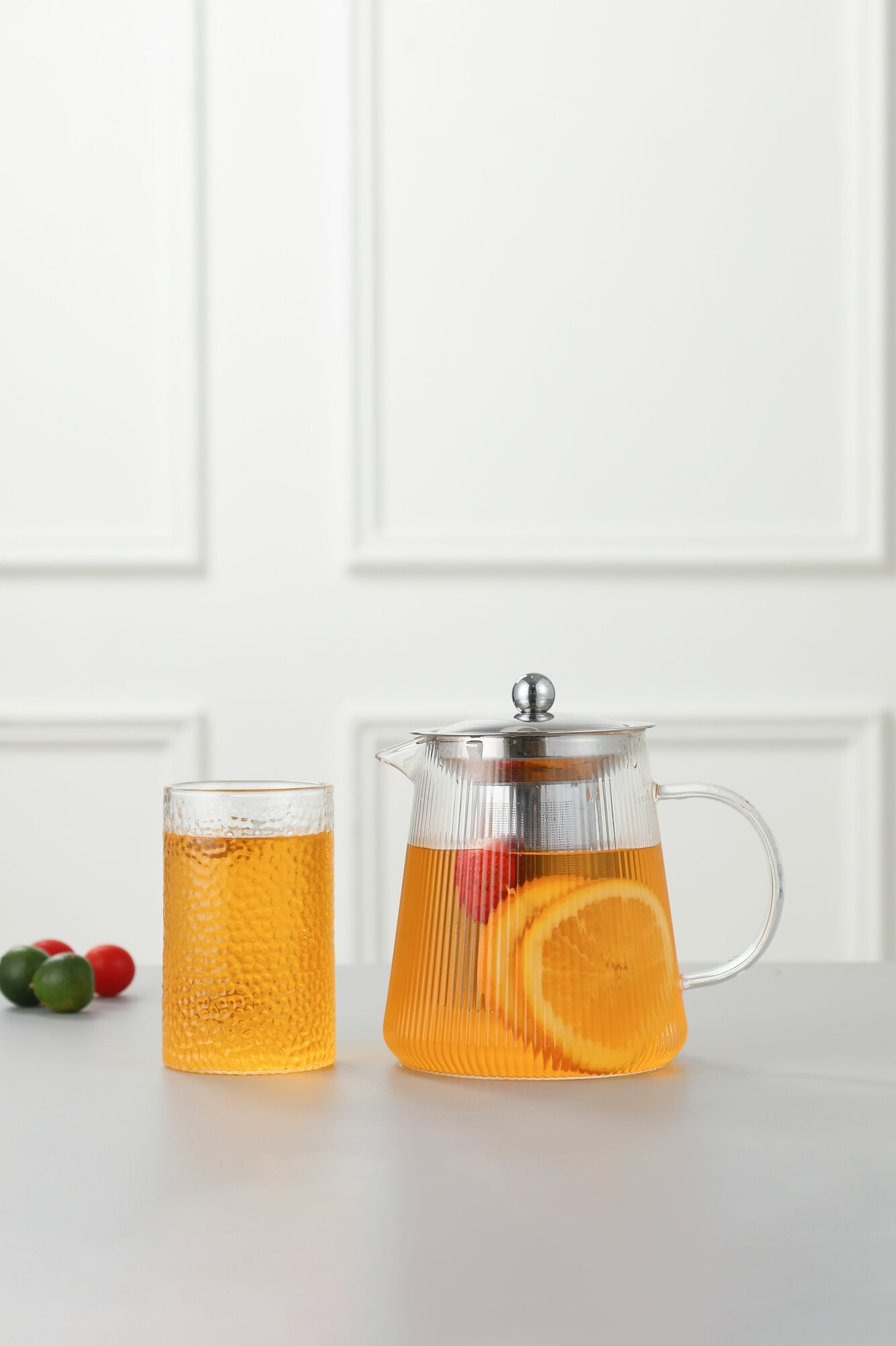 Чайник заварочный стеклянный 1600 мл Unifico из боросиликатного рельефного стекла с бамбуковой крышкой