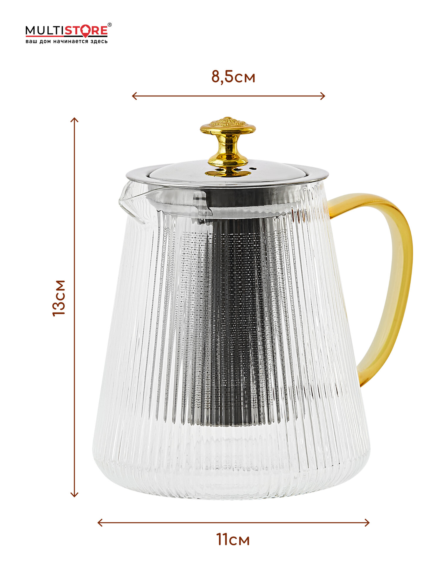 Заварник стеклянный термостойкий с ситечком и крышкой из нержавеющей стали с декоративным элементом, 800мл интересное: