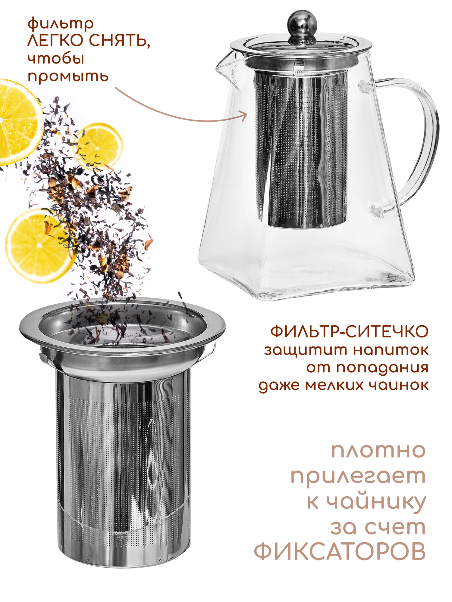 Заварник стеклянный прозрачный термостойкий с фильтром колбой и крышечкой 900мл интересное: