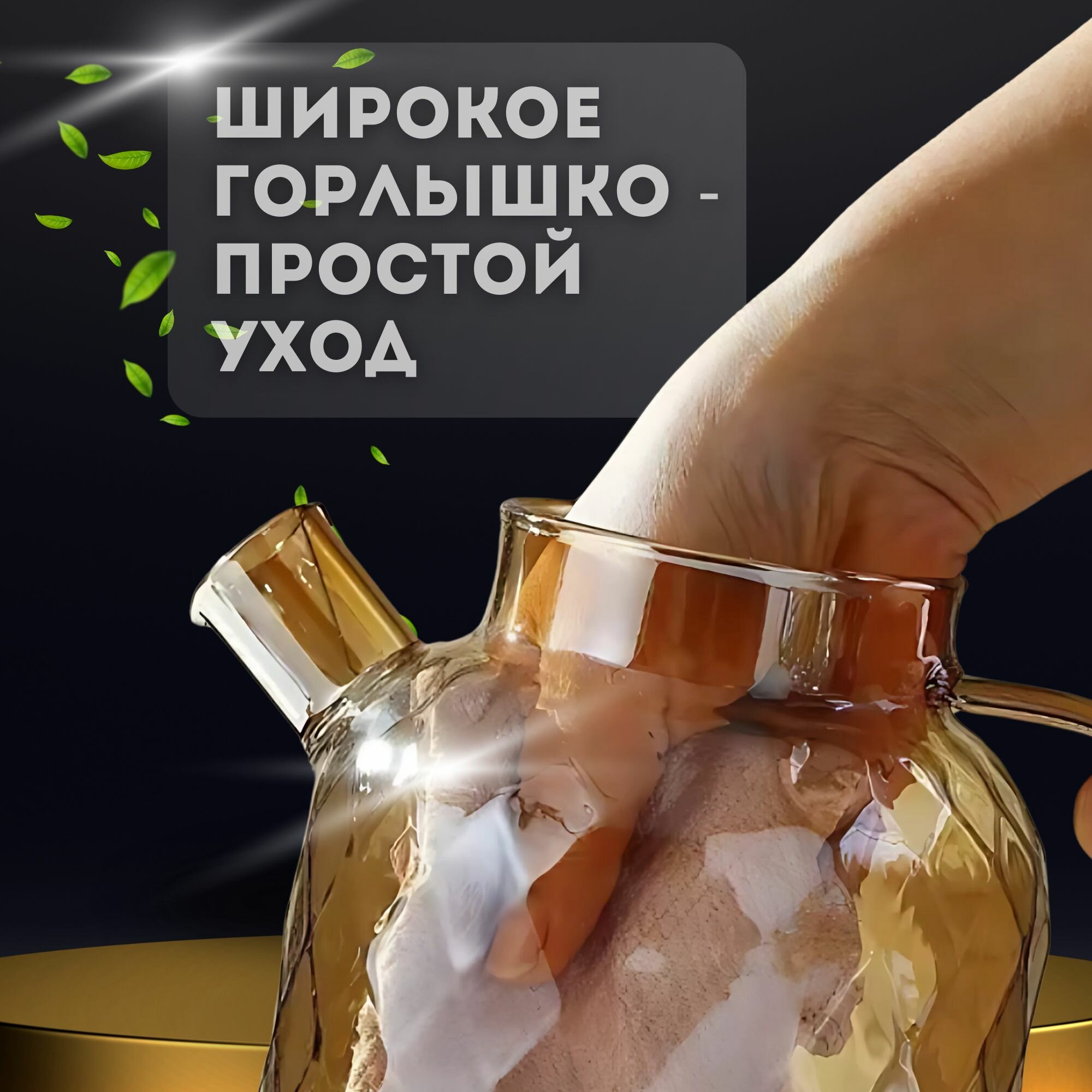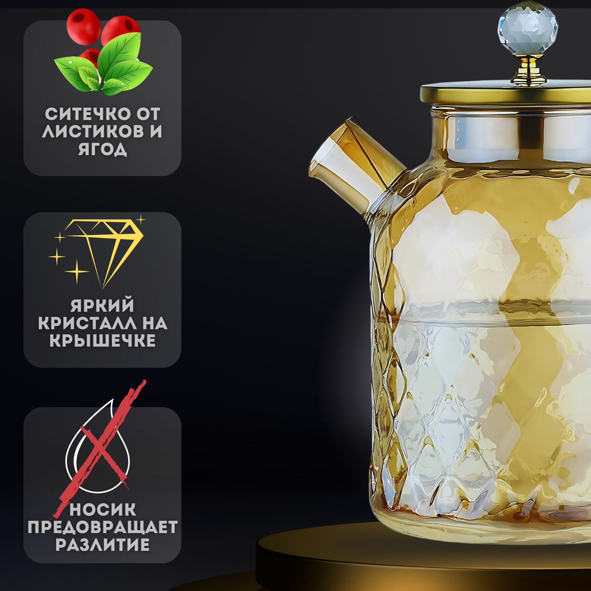 Стеклянный заварочный чайник 1 литр с фильтром в носике и крышкой