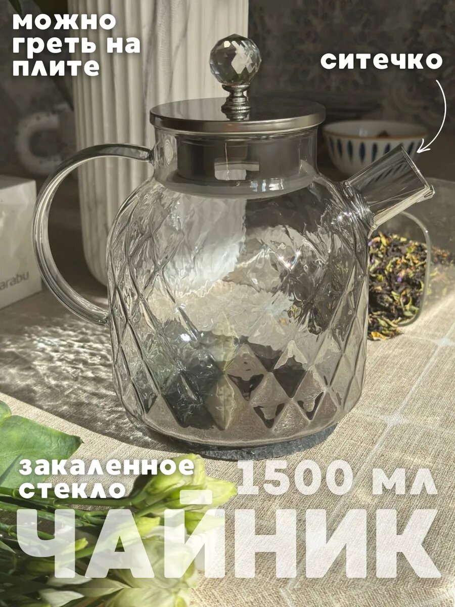 Заварочный чайник "Ромб", стекло, с крышкой, серебристый, 1,5 л интересное: