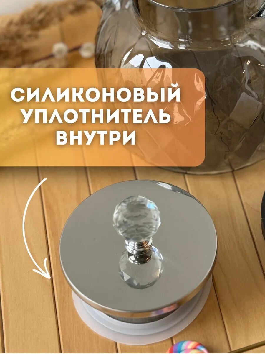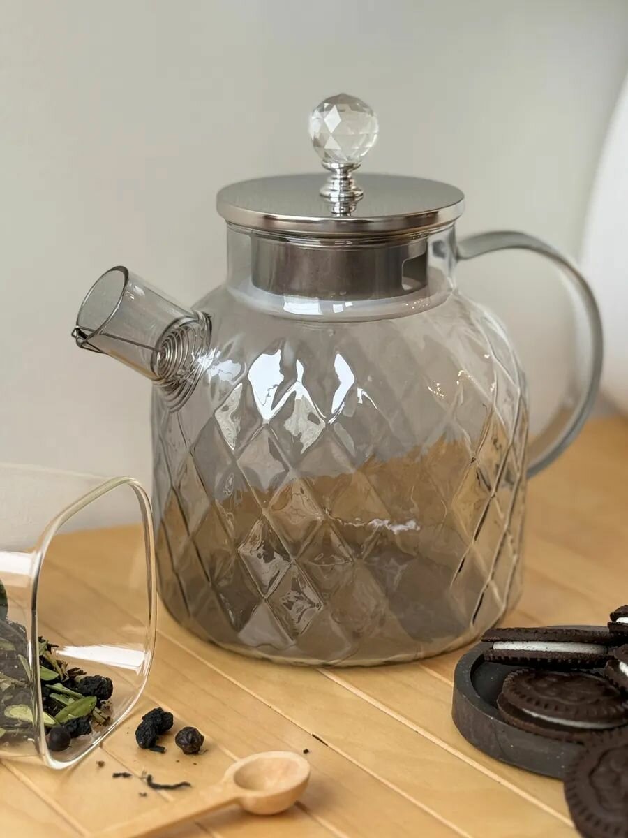 Заварочный чайник, стеклянный, с ситечком, серебристый, 1,8 л