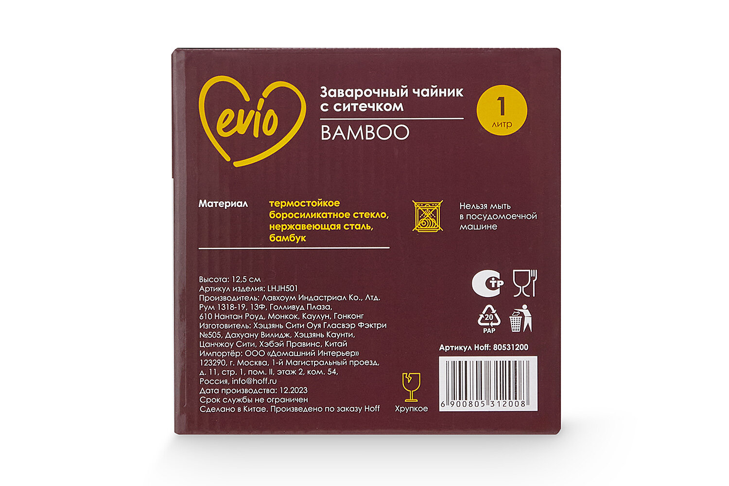Заварочный чайник из стекла EVIO Bamboo, объем 1 л, прозрачный, с ситечком интересное: