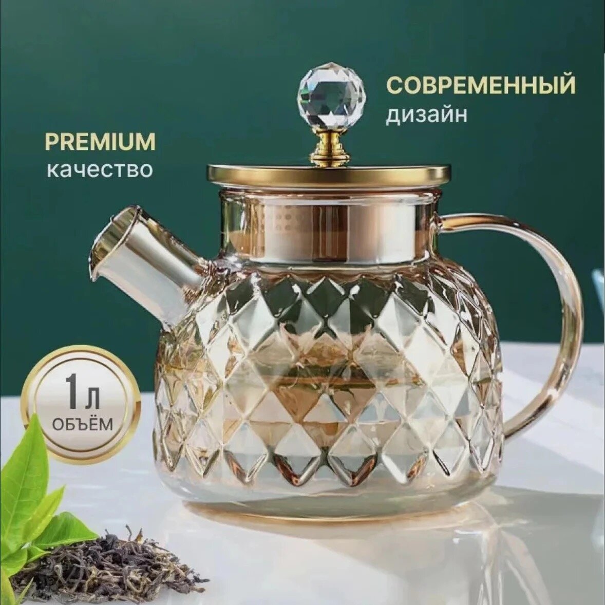 Чайник заварочный стеклянный 1000 мл, заварник интересное: