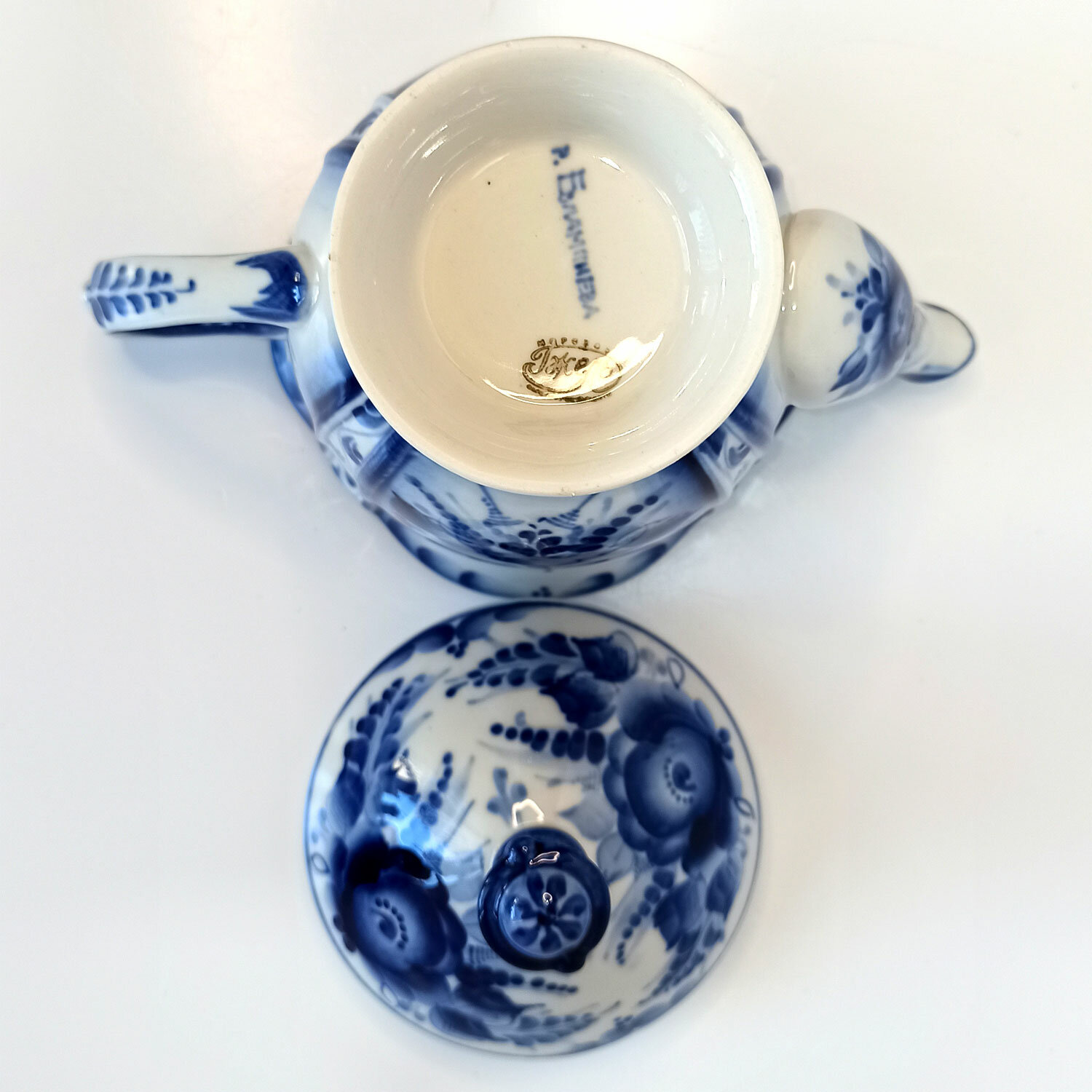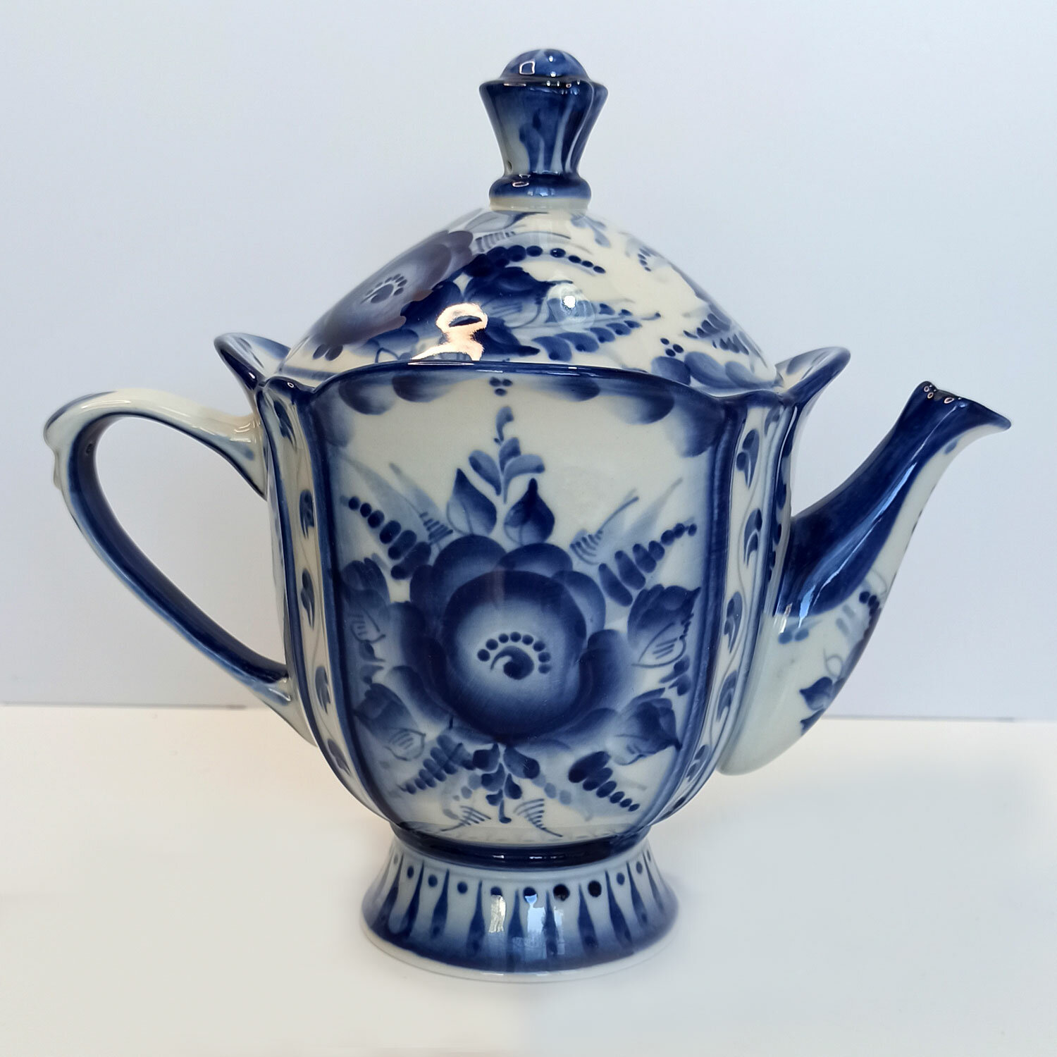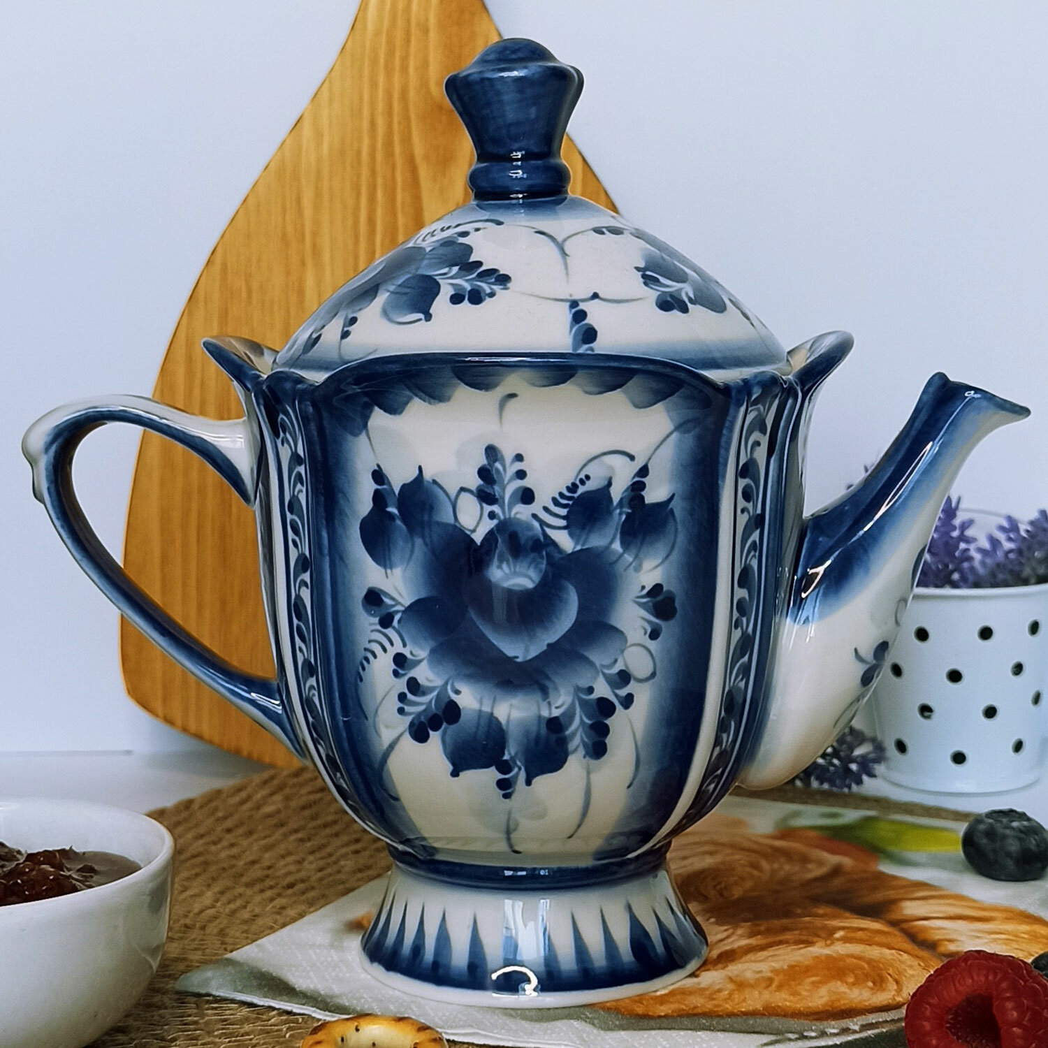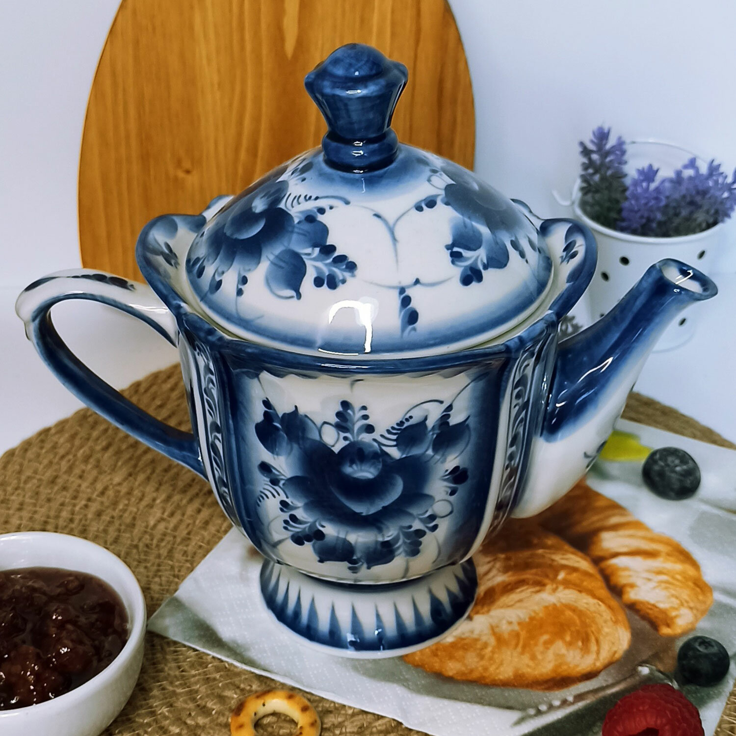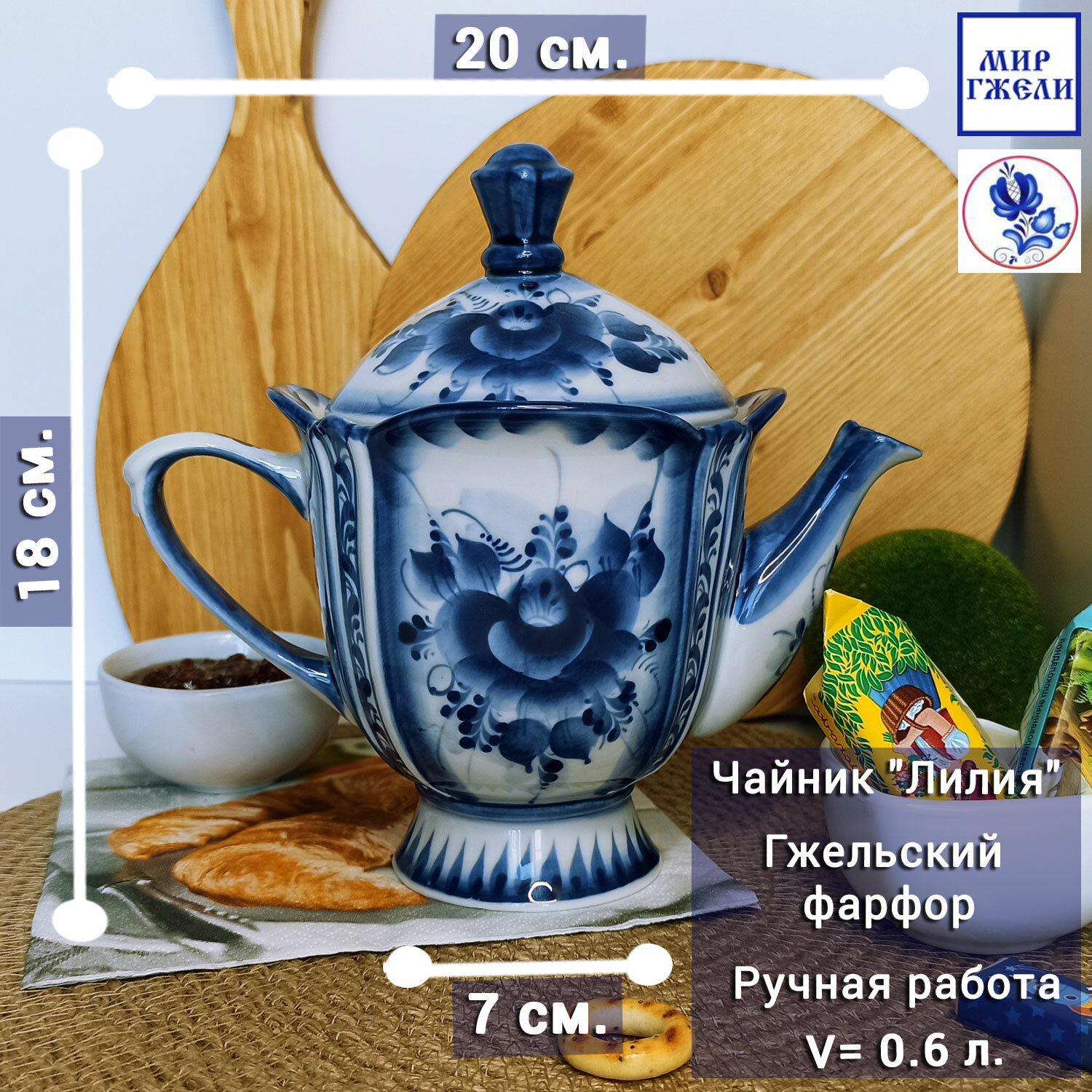 Чайник заварочный "Лилия", объём 0.6 л. Гжель, ручная работа интересное: