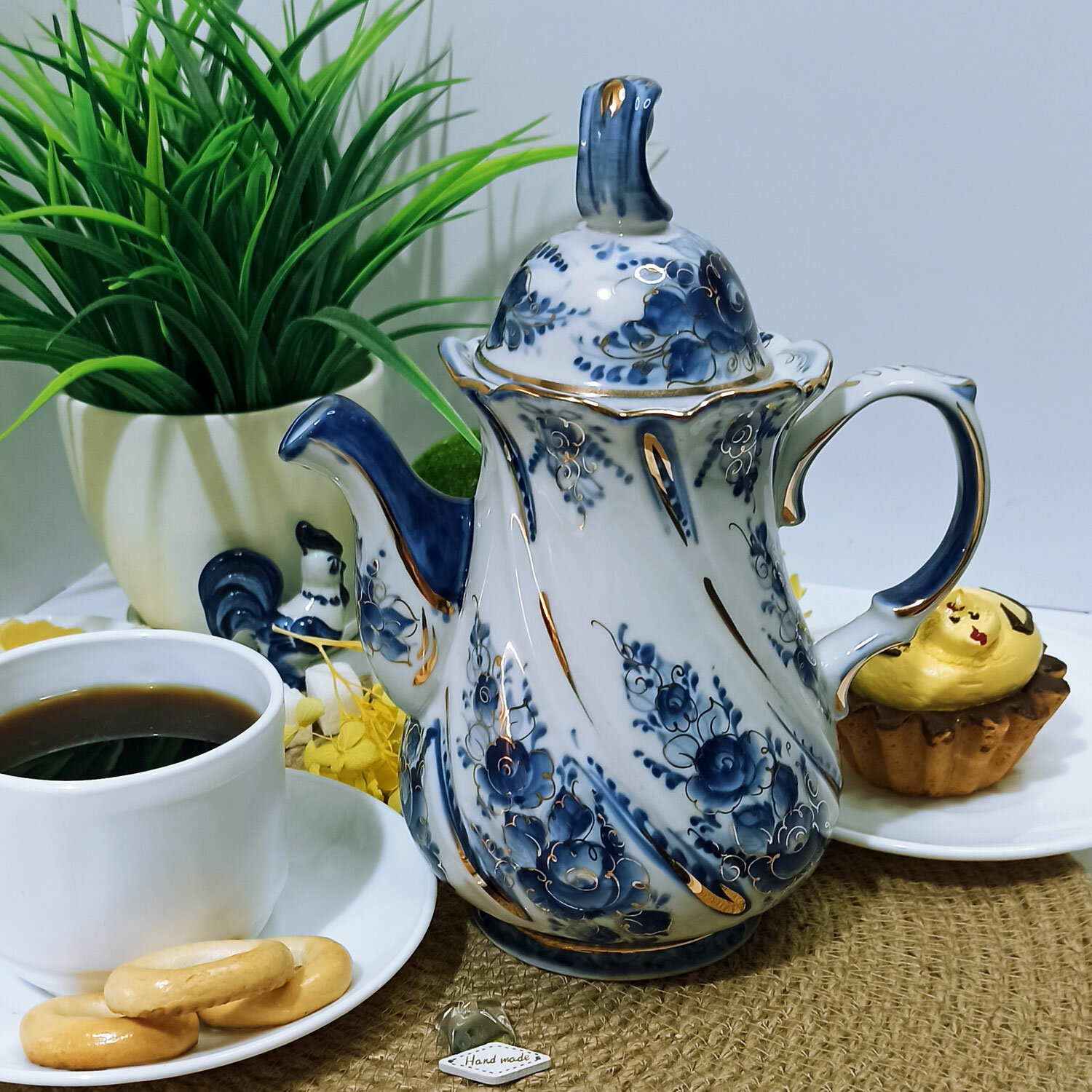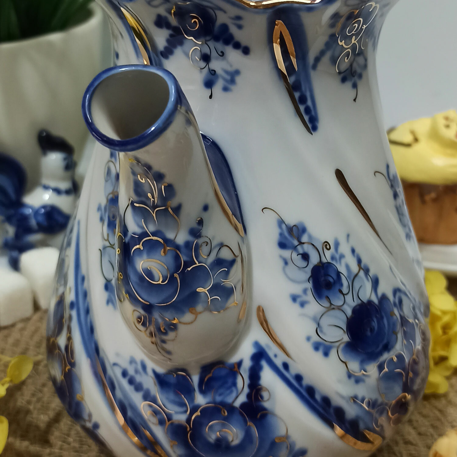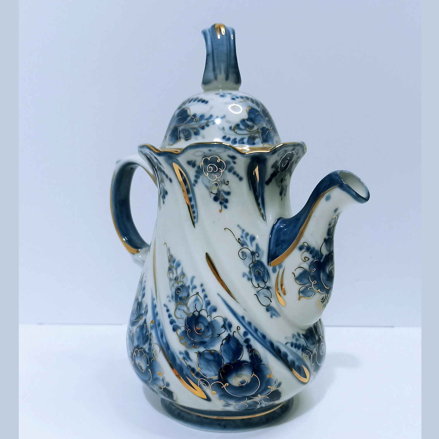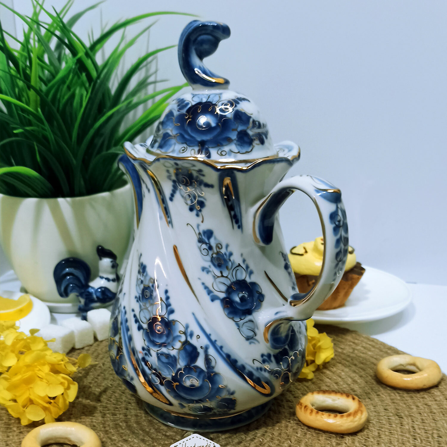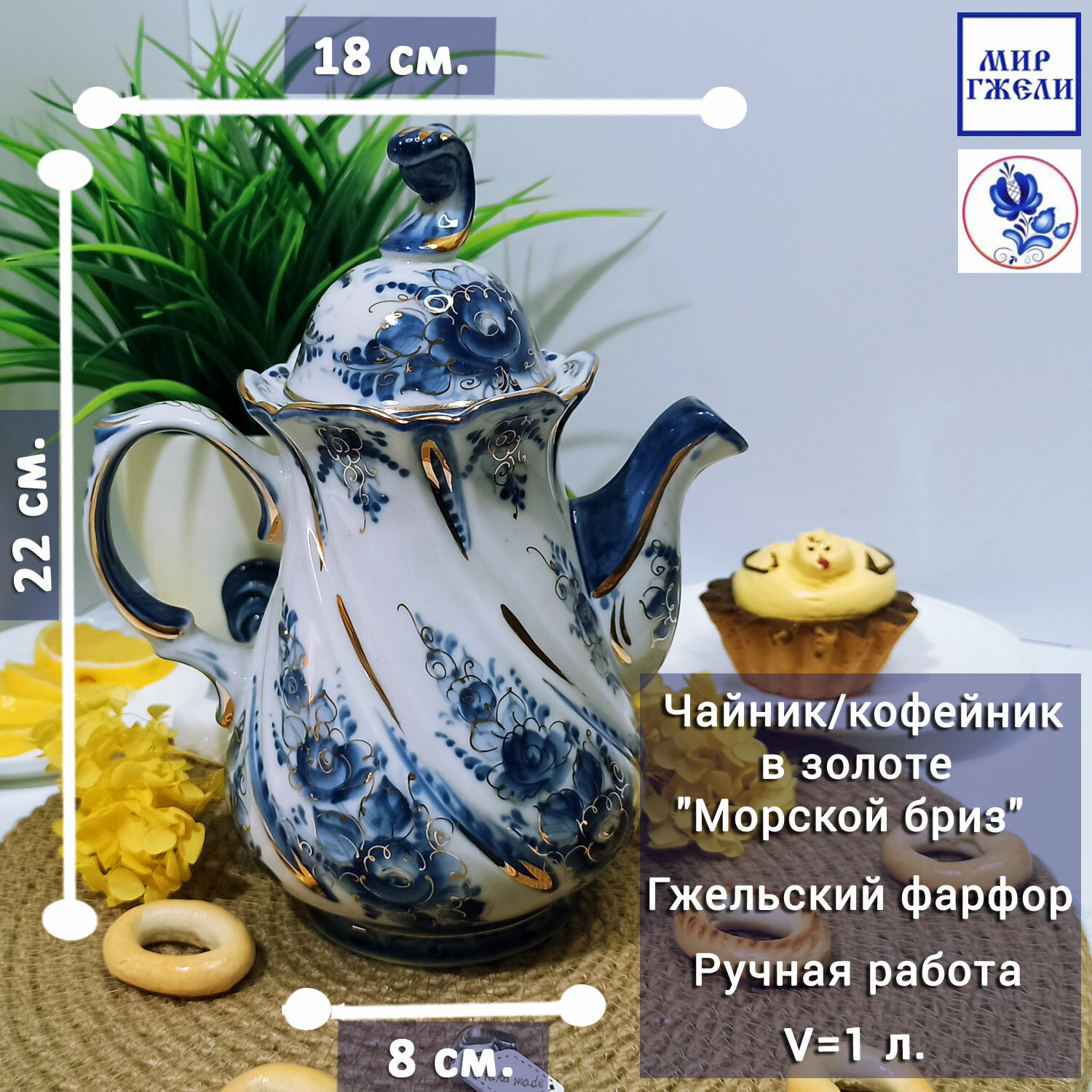 Чайник/кофейник в золоте "Морской бриз", объём 1 л. Гжель, ручная работа интересное: