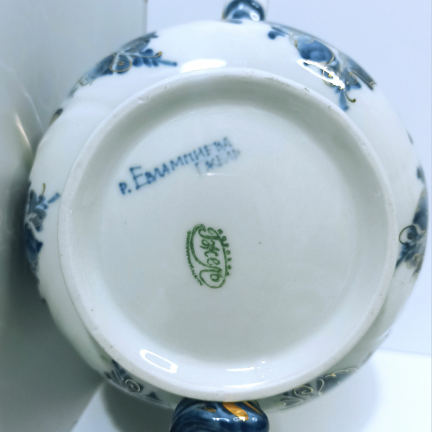 Купить Чайник/кофейник в золоте "Морской бриз", объём 1 л. Гжель, ручная работа