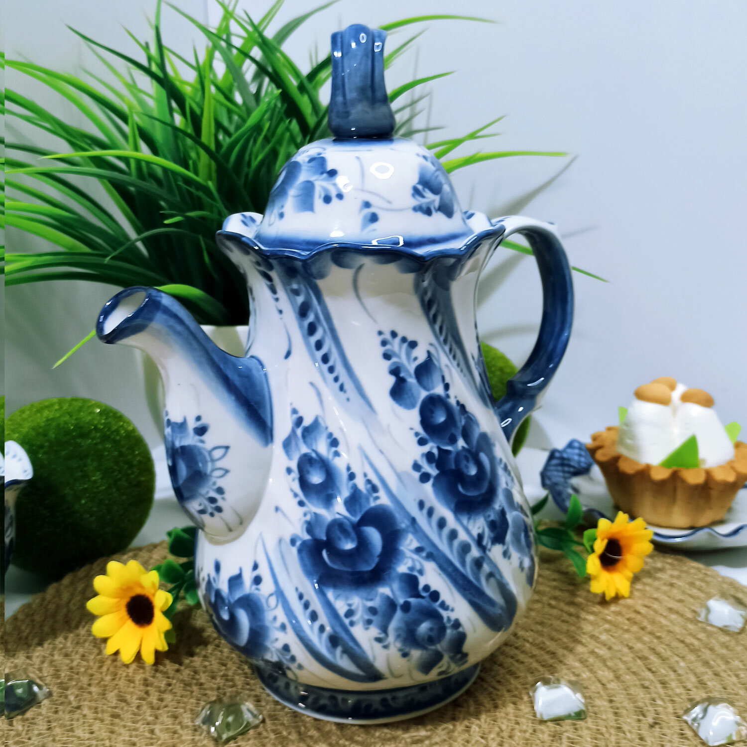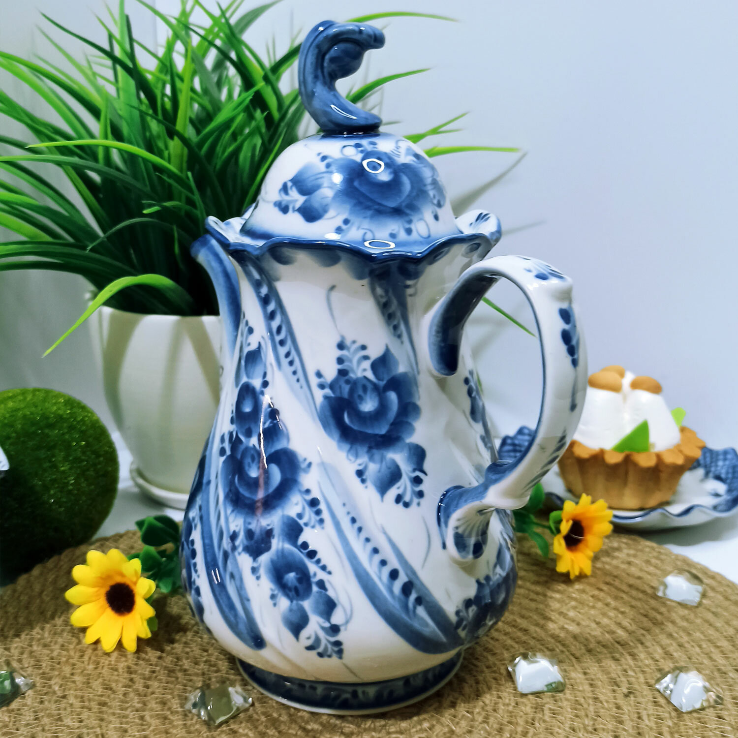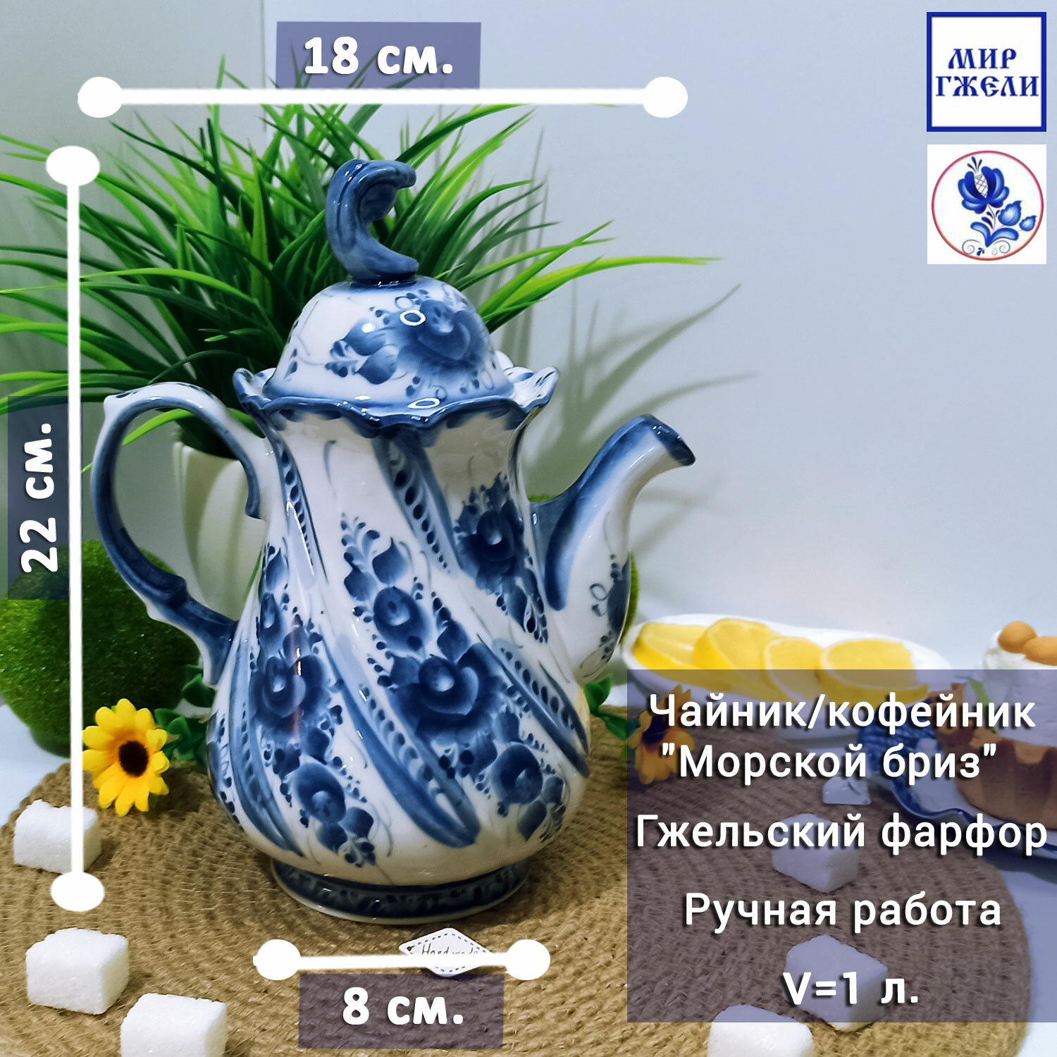 Чайник/кофейник "Морской бриз", объём 1 л. Гжель, ручная работа интересное: