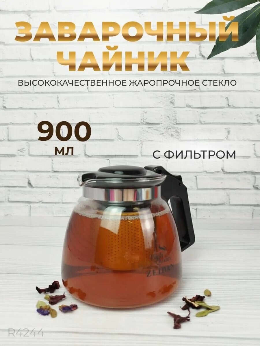 Чайник заварочный стеклянный Zeidan 900 мл кофейник из термостойкого стекла с фильтром интересное: