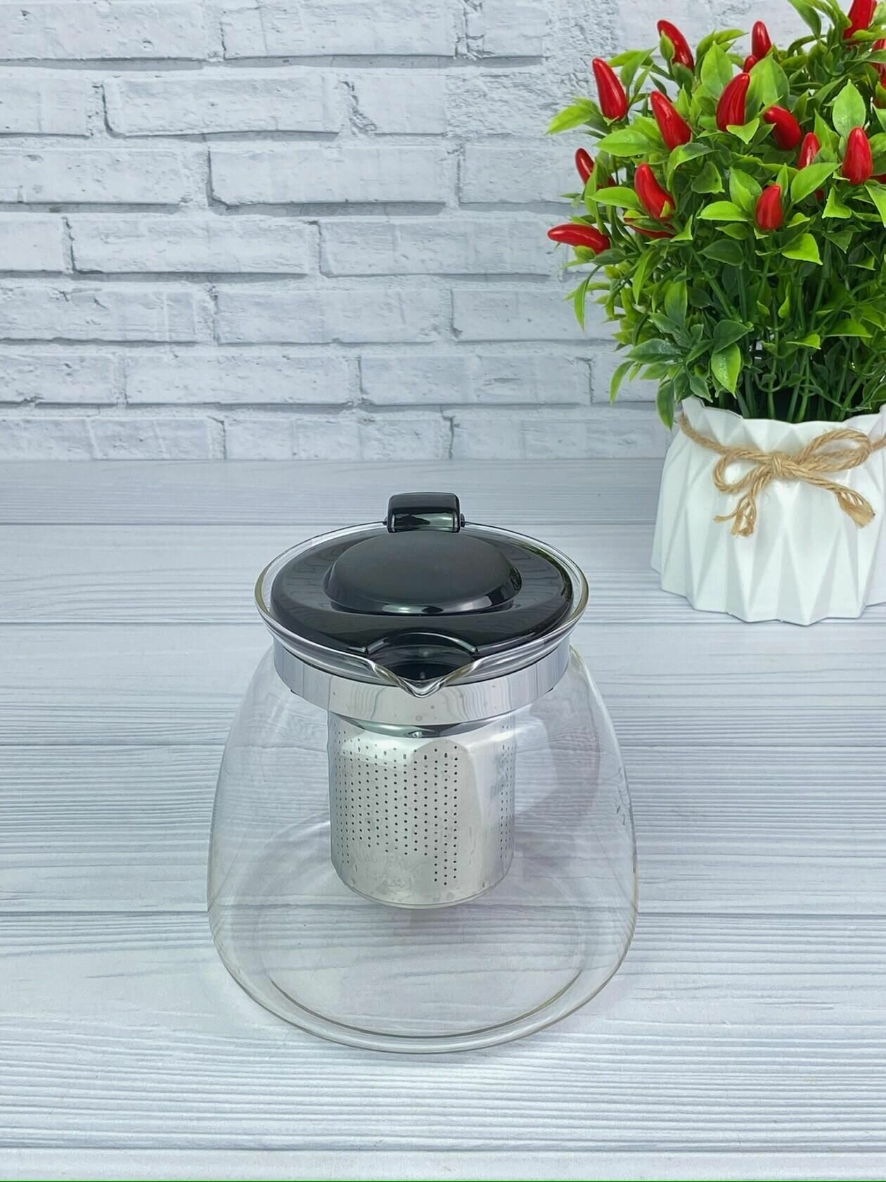 Чайник заварочный стеклянный с фильтром из нержавеющей стали 1 литр