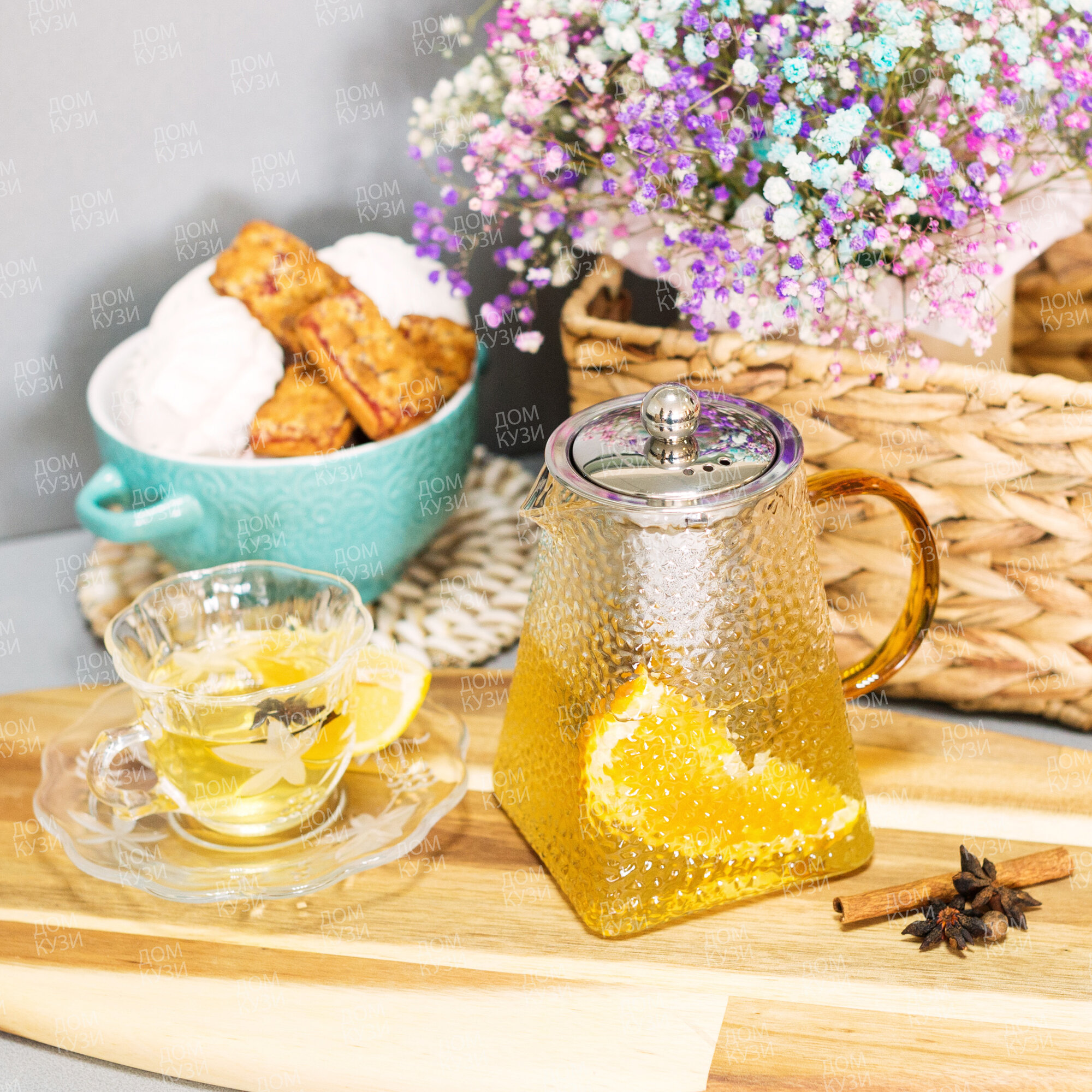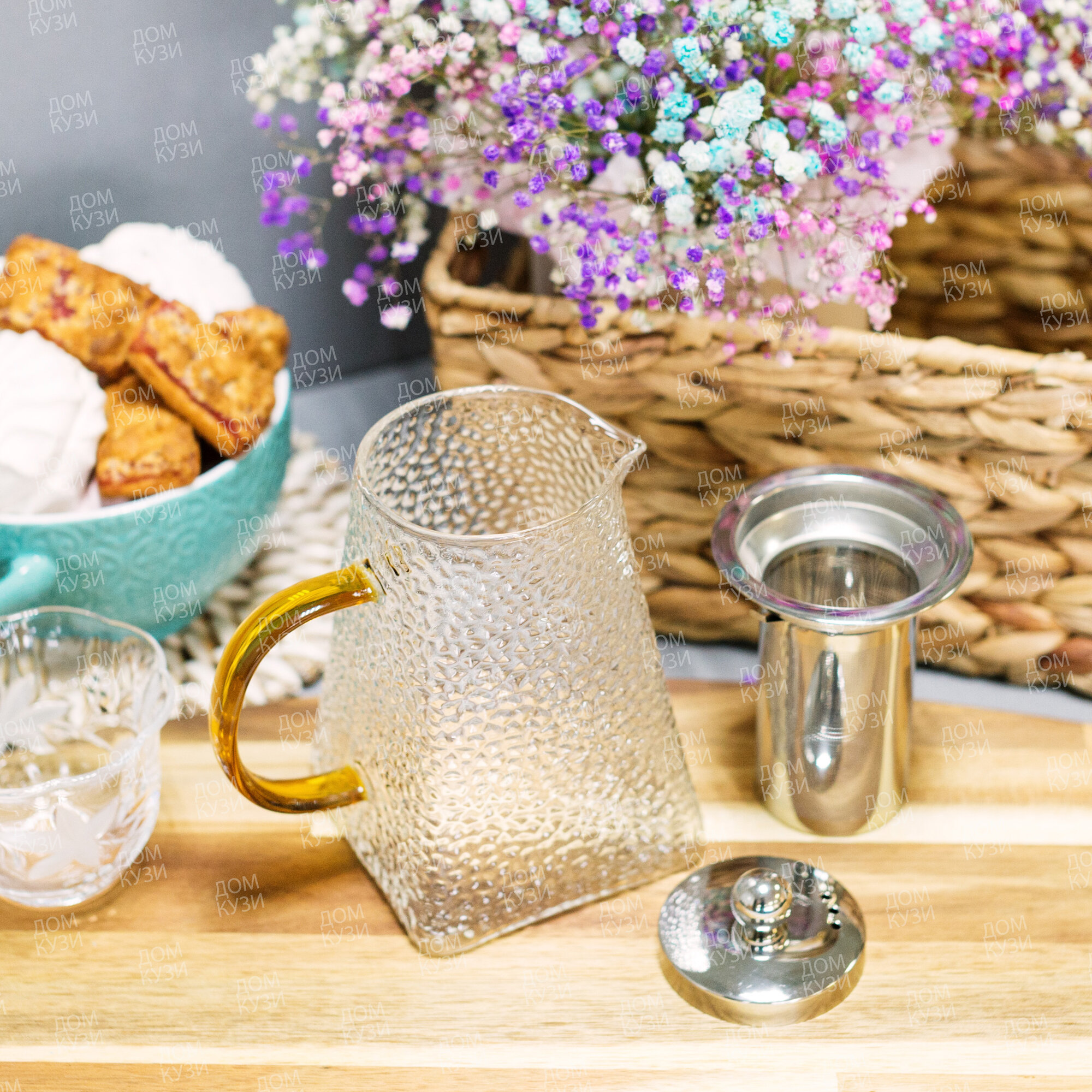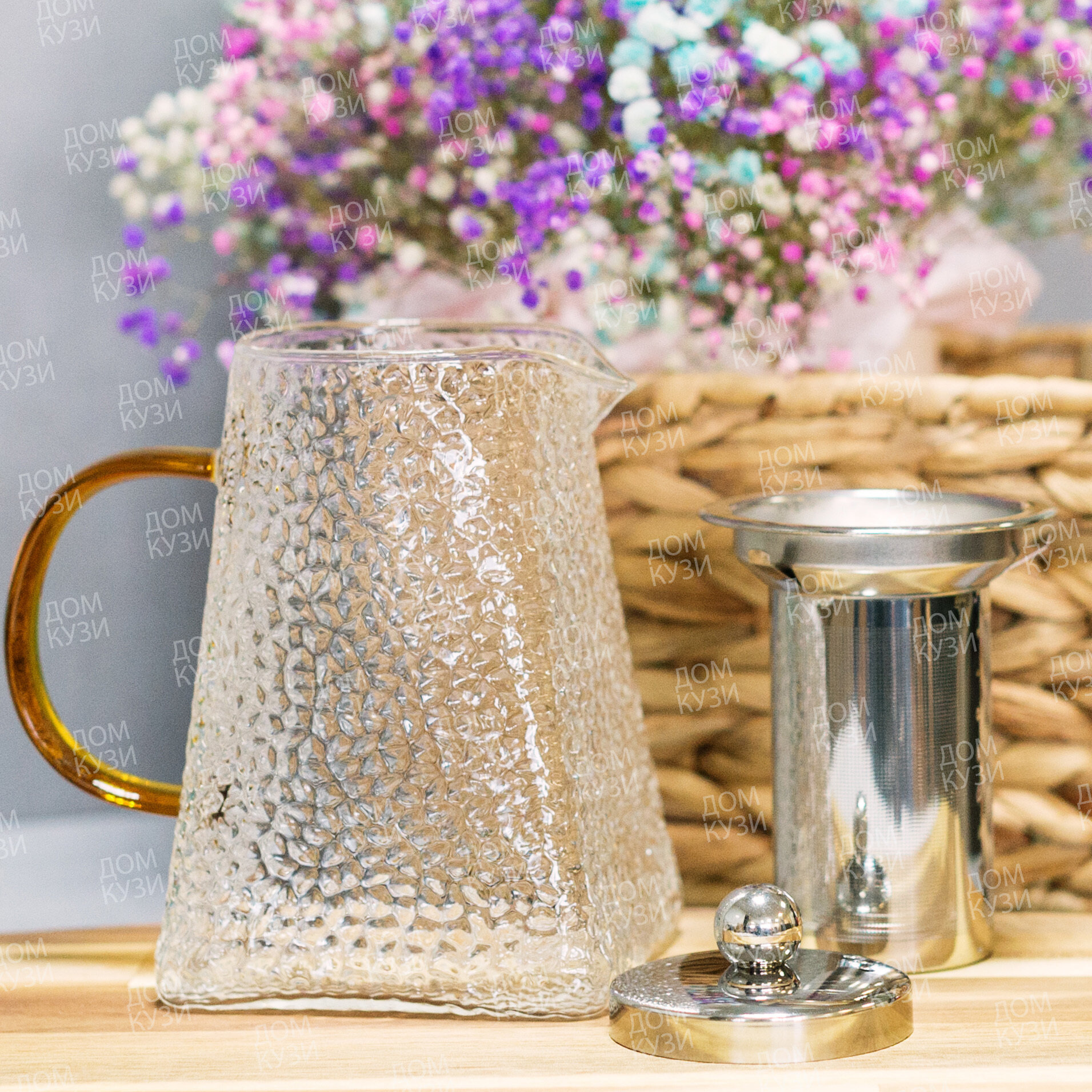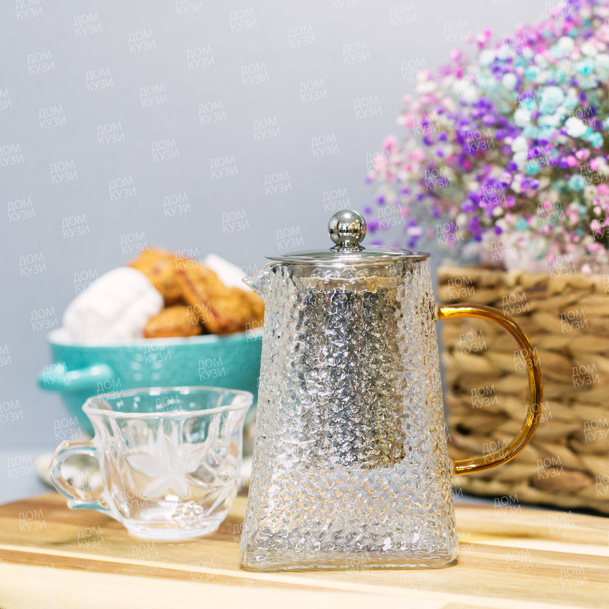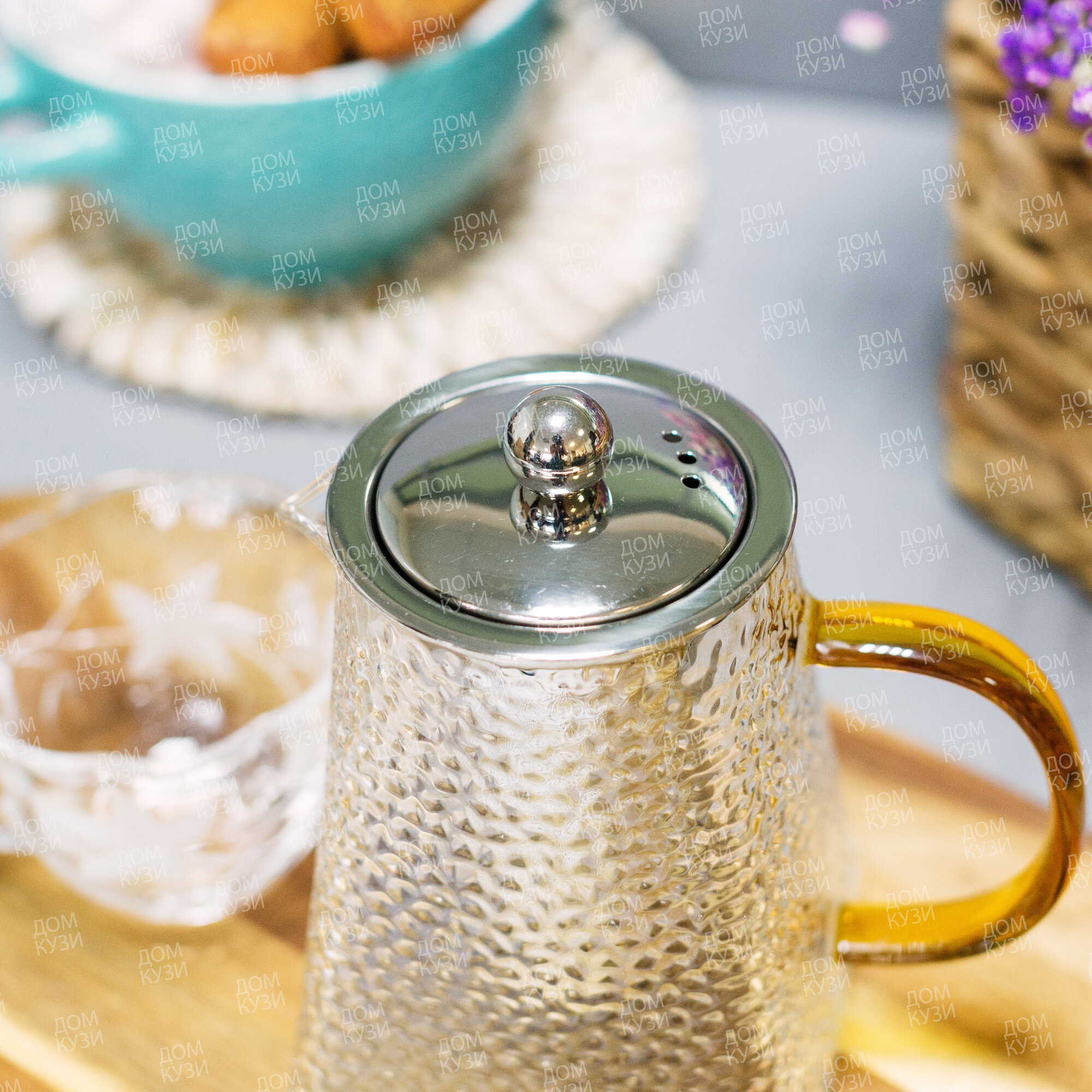 Чайник заварочный стеклянный с фильтром из нержавеющей стали 1 литр