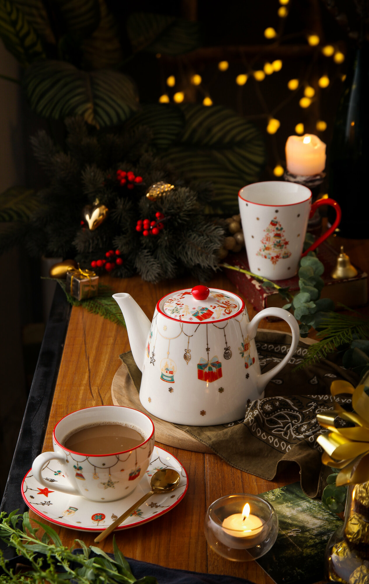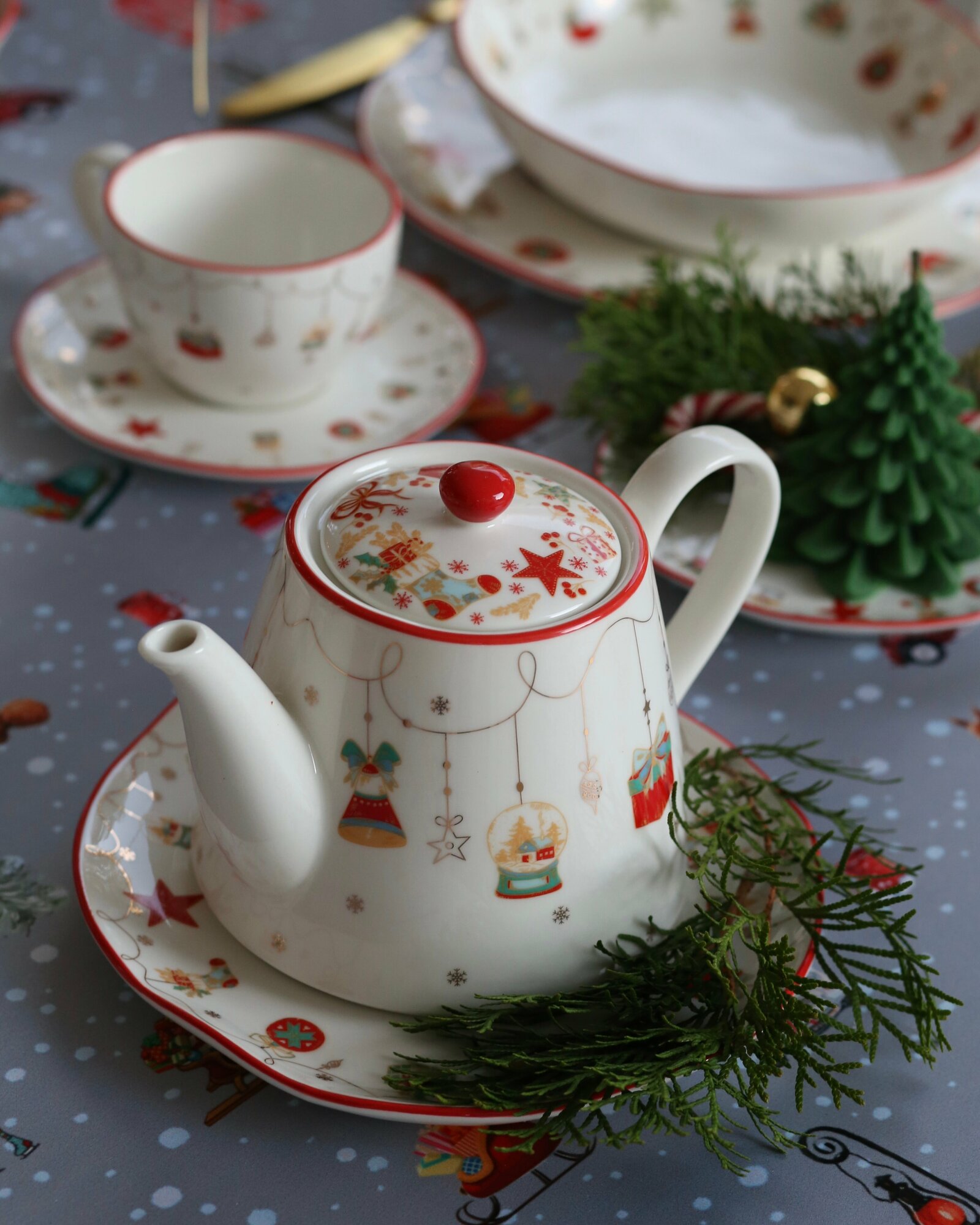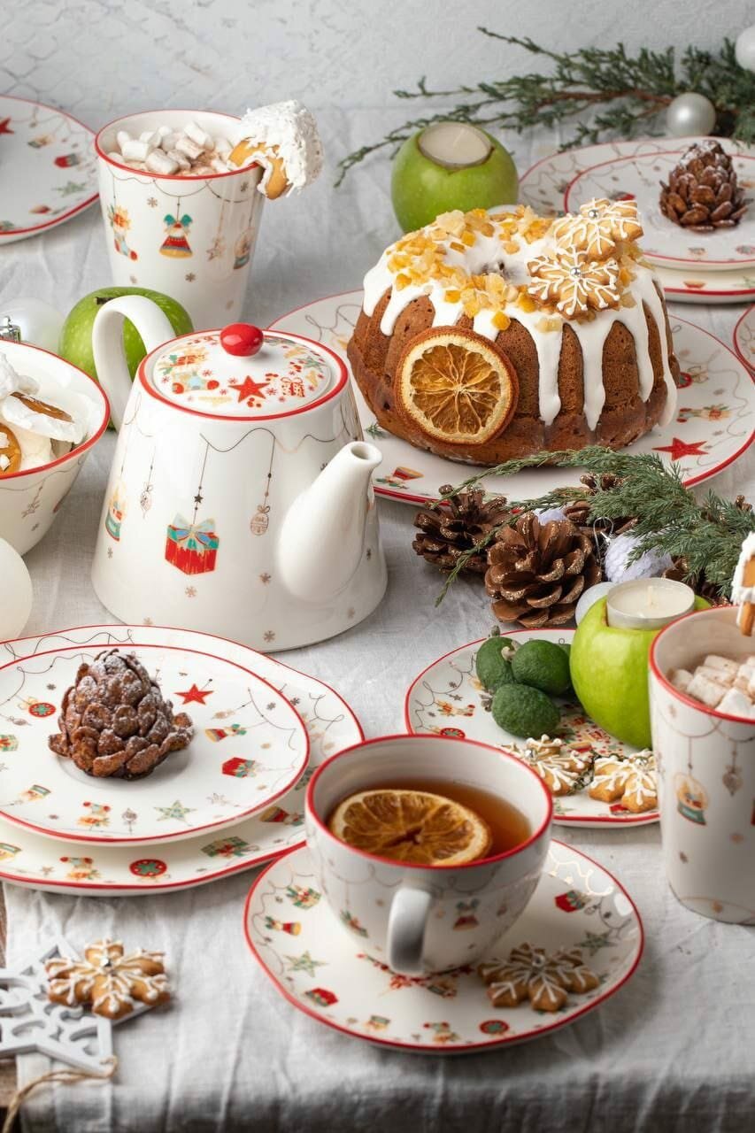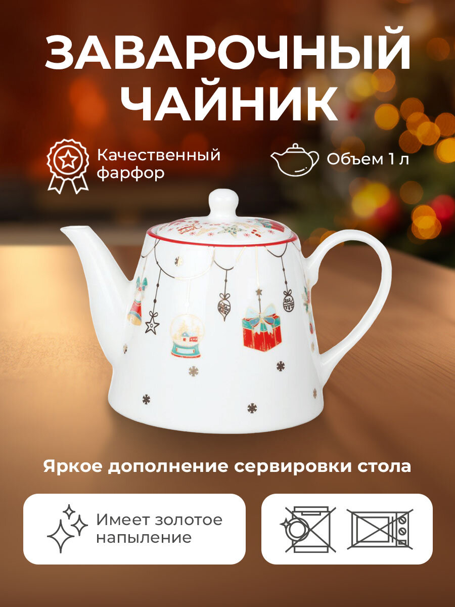 Новогодний чайник заварочный "Christmas Gift" 1 л из фарфора интересное: