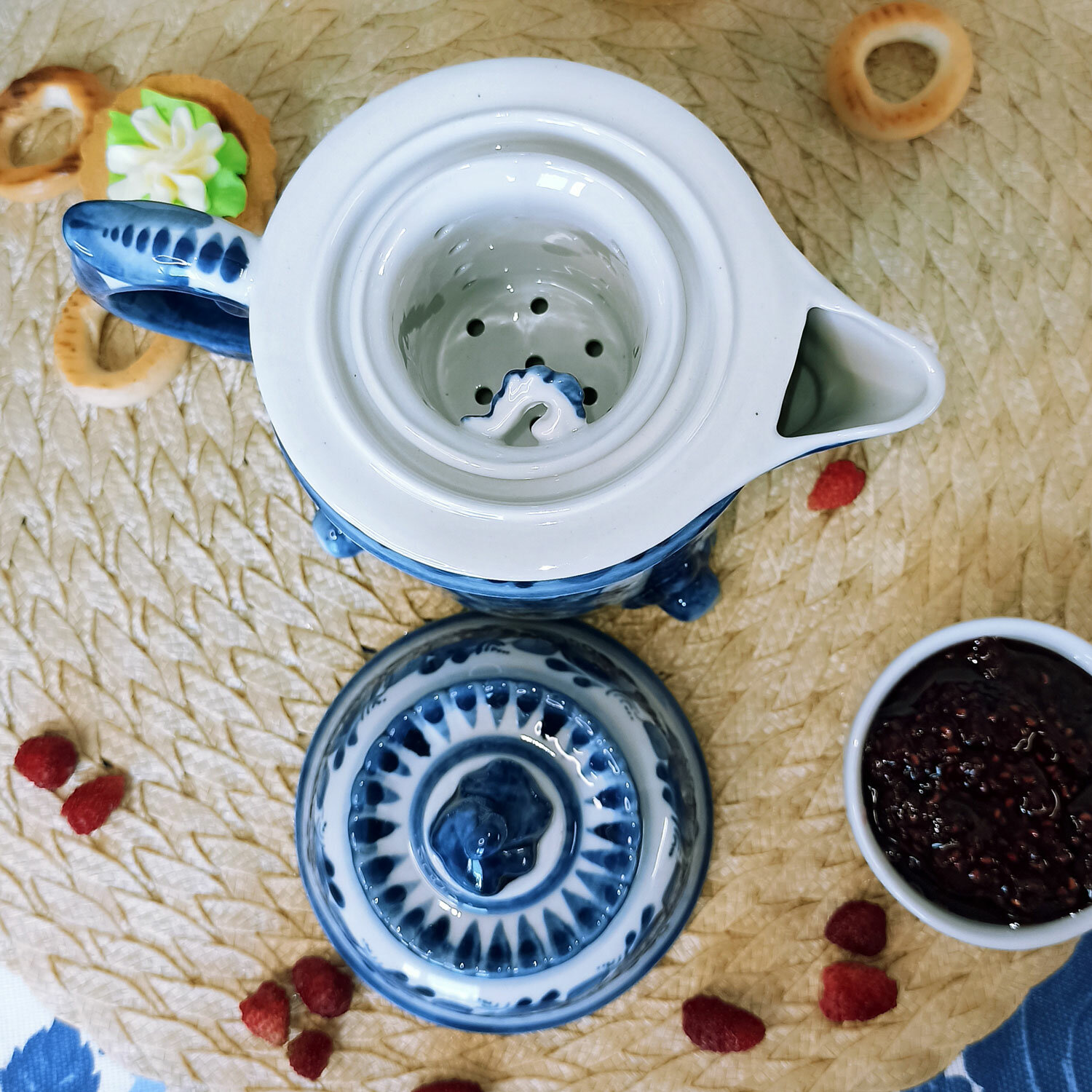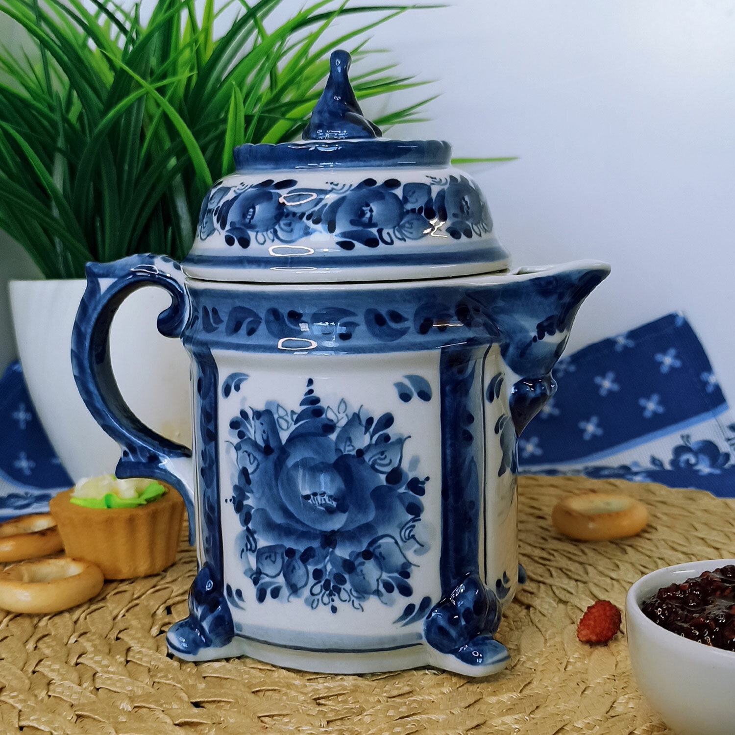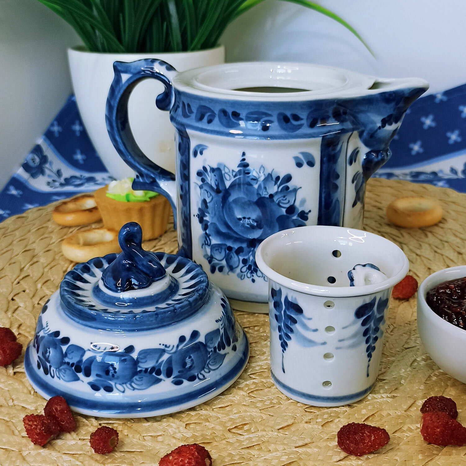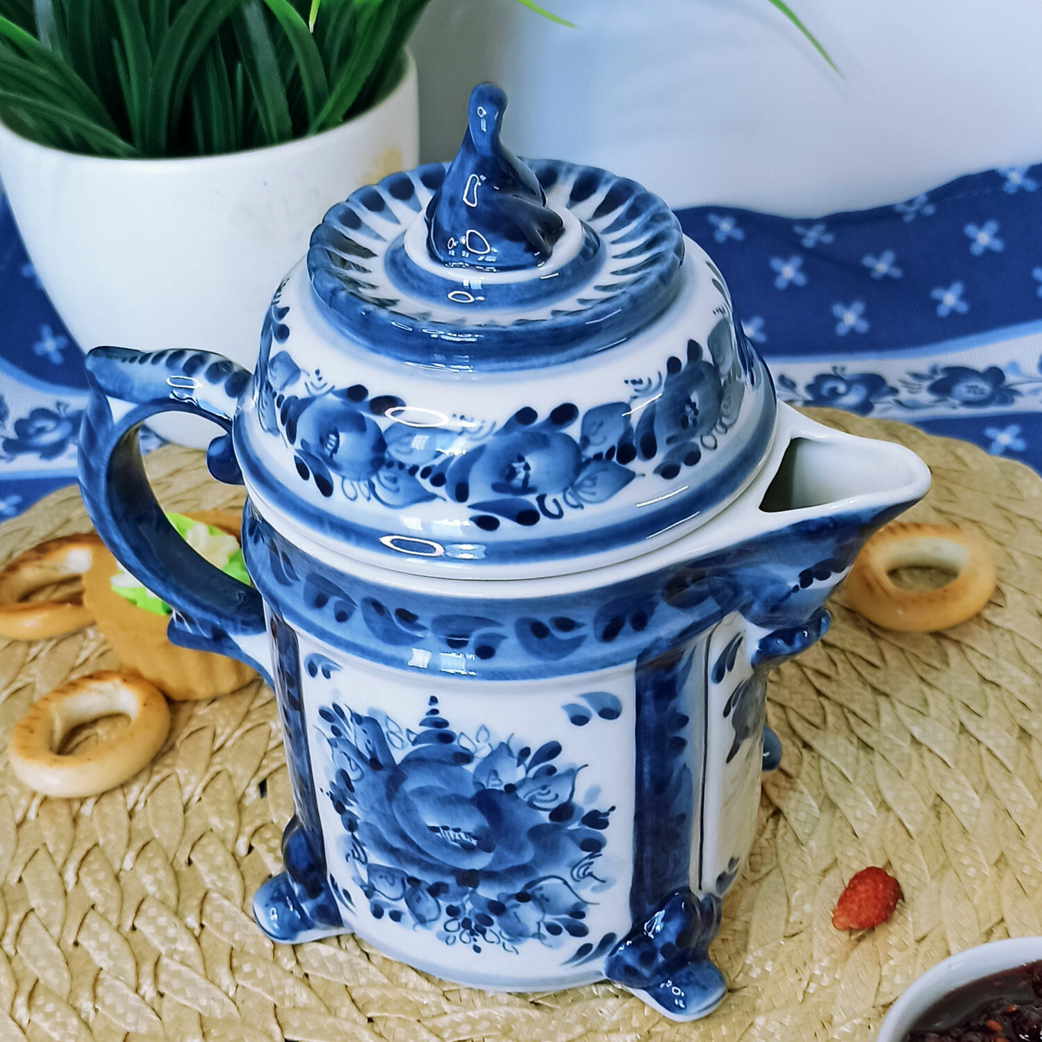 Чайник заварочный с ситом "Вечерок", объём 0.6 л. Гжель, ручная работа интересное: