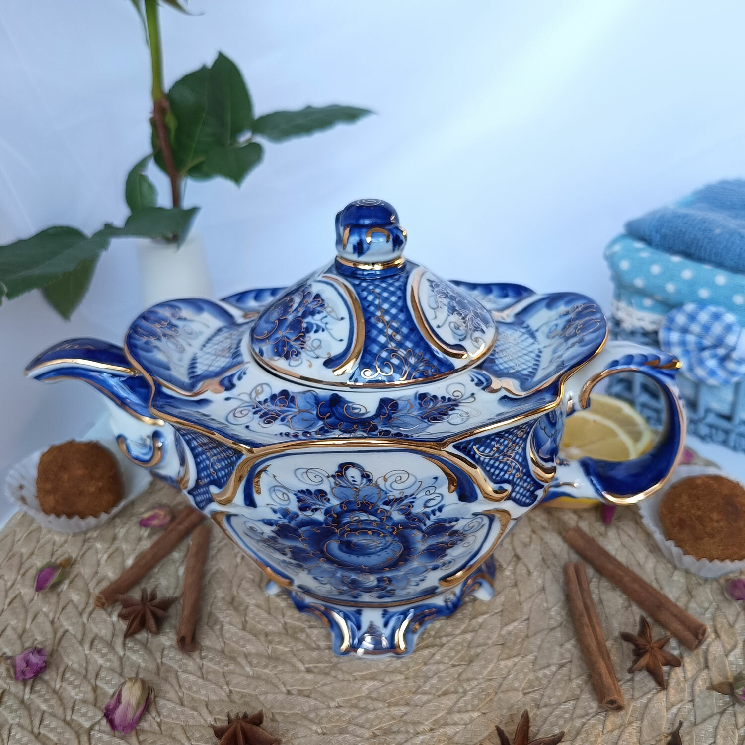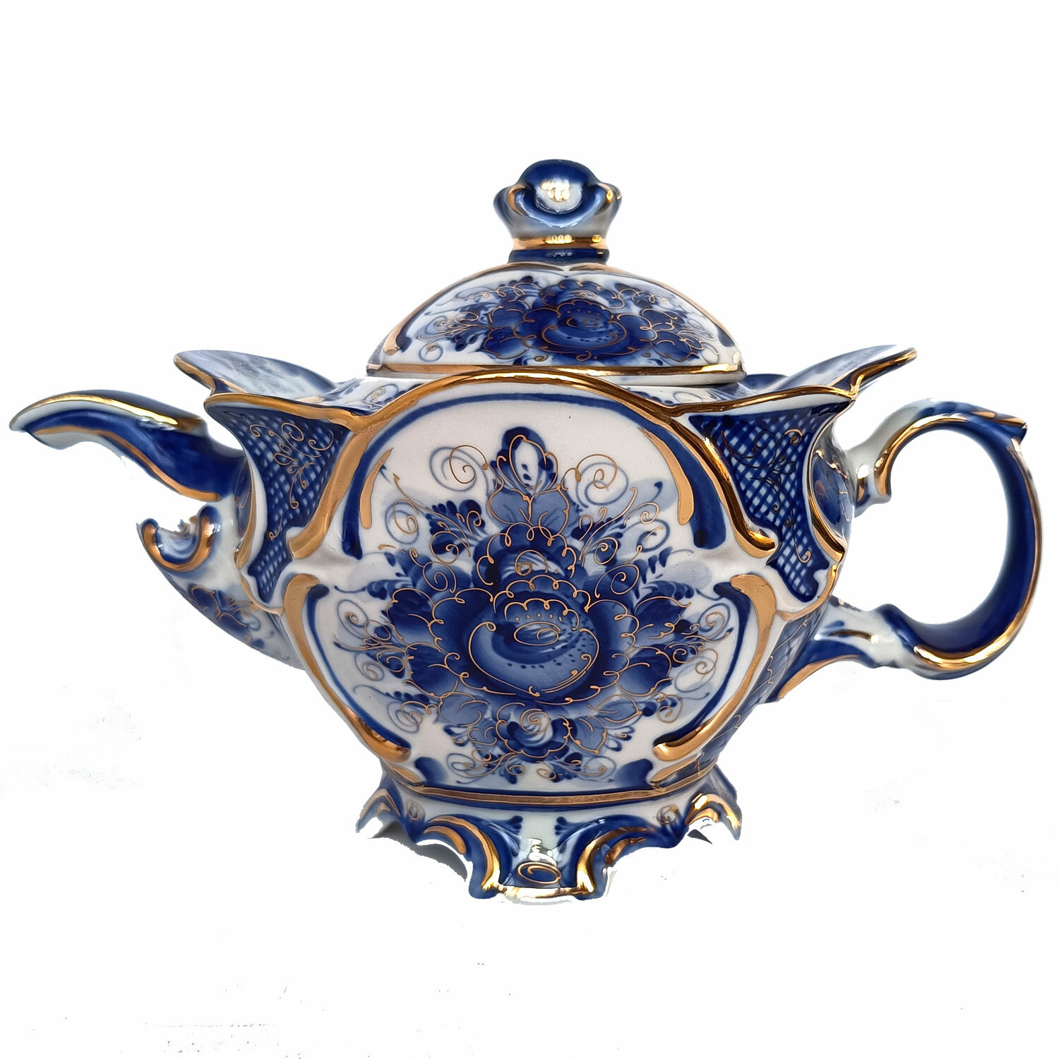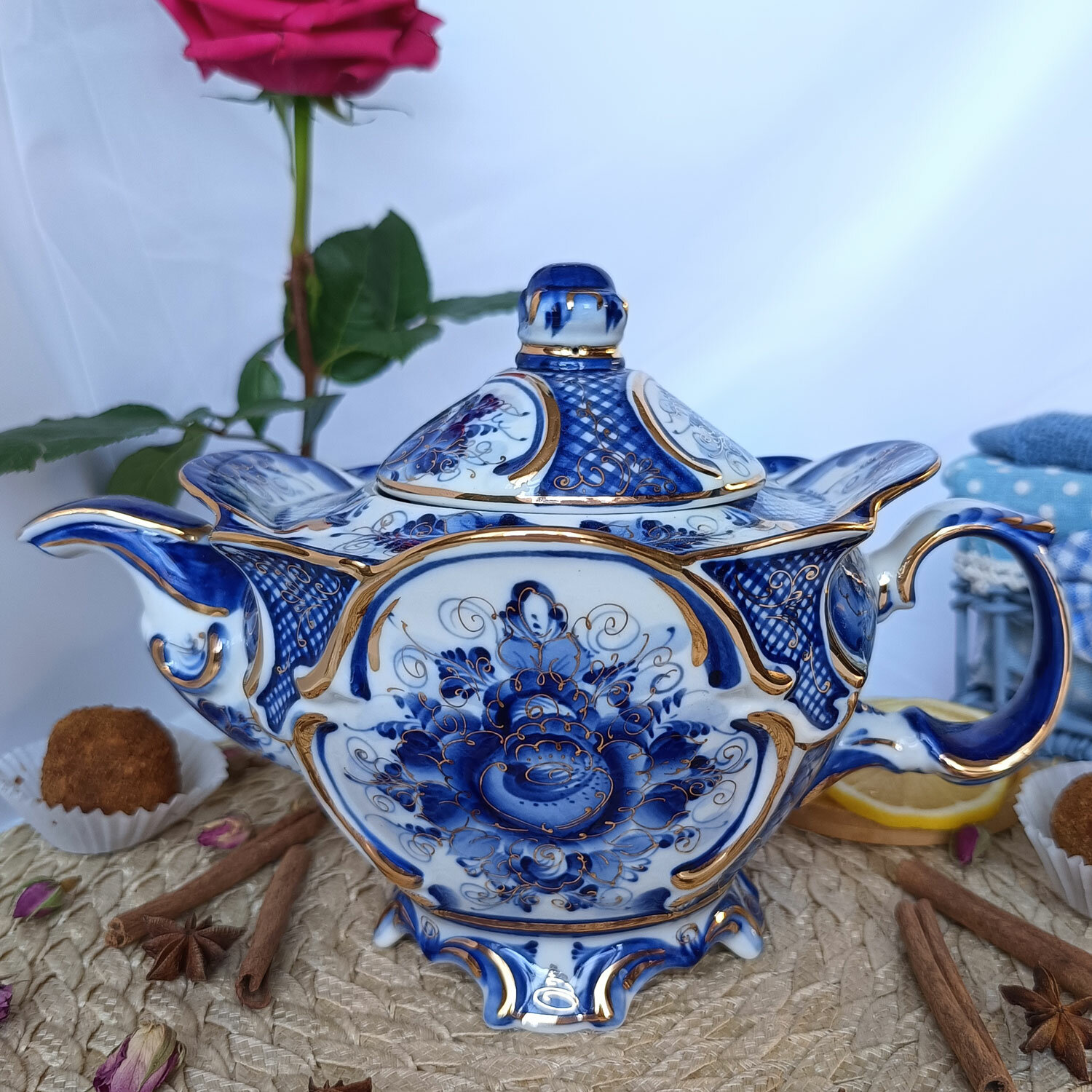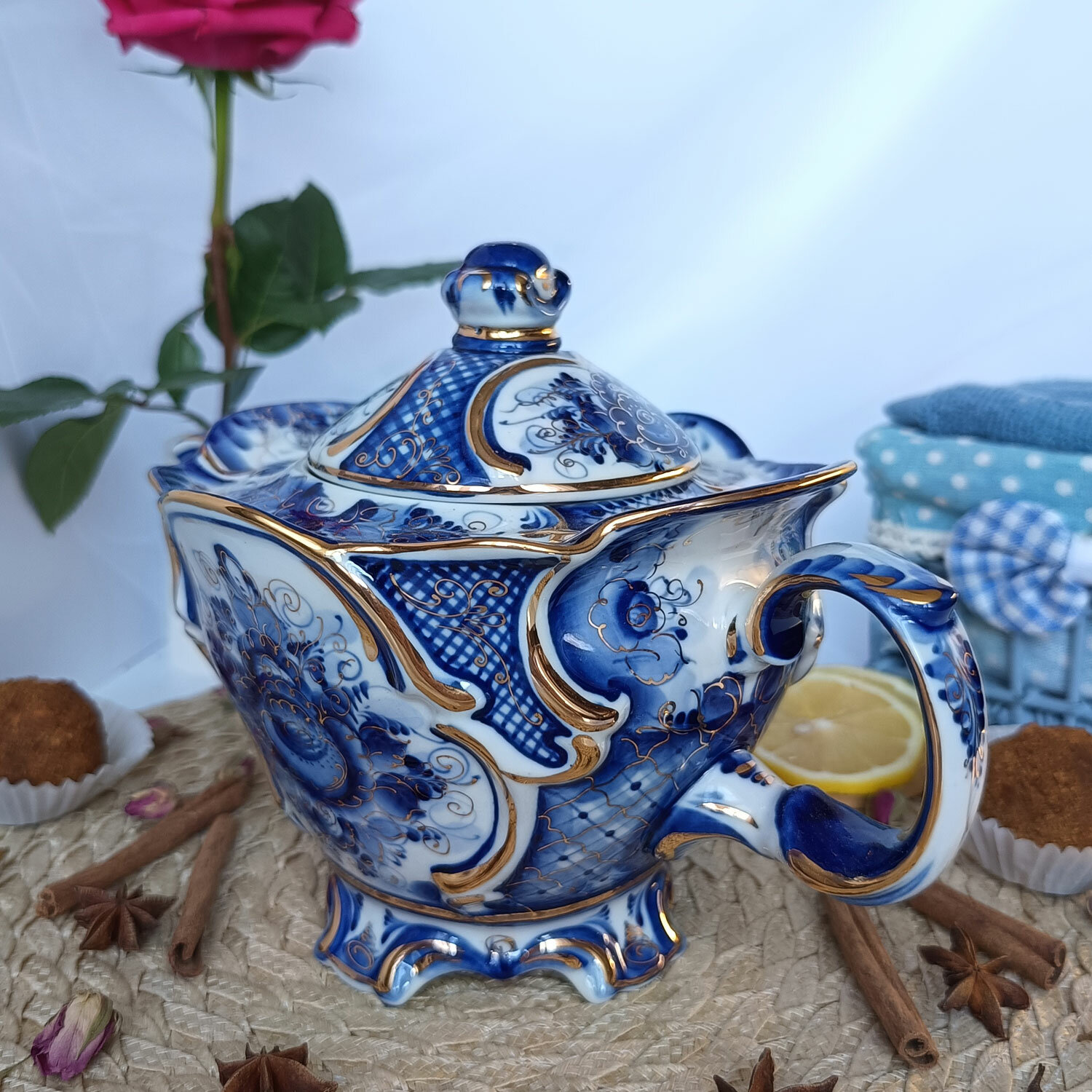 Чайник заварочный в золоте "Сказка", объём 1 л. Гжель, ручная работа интересное: