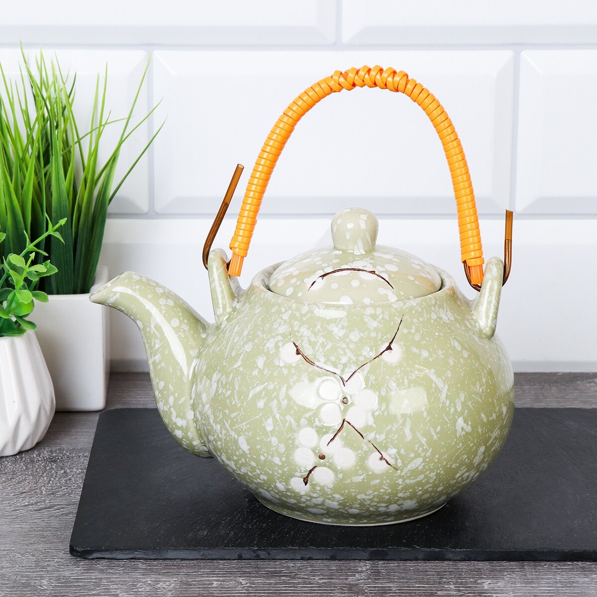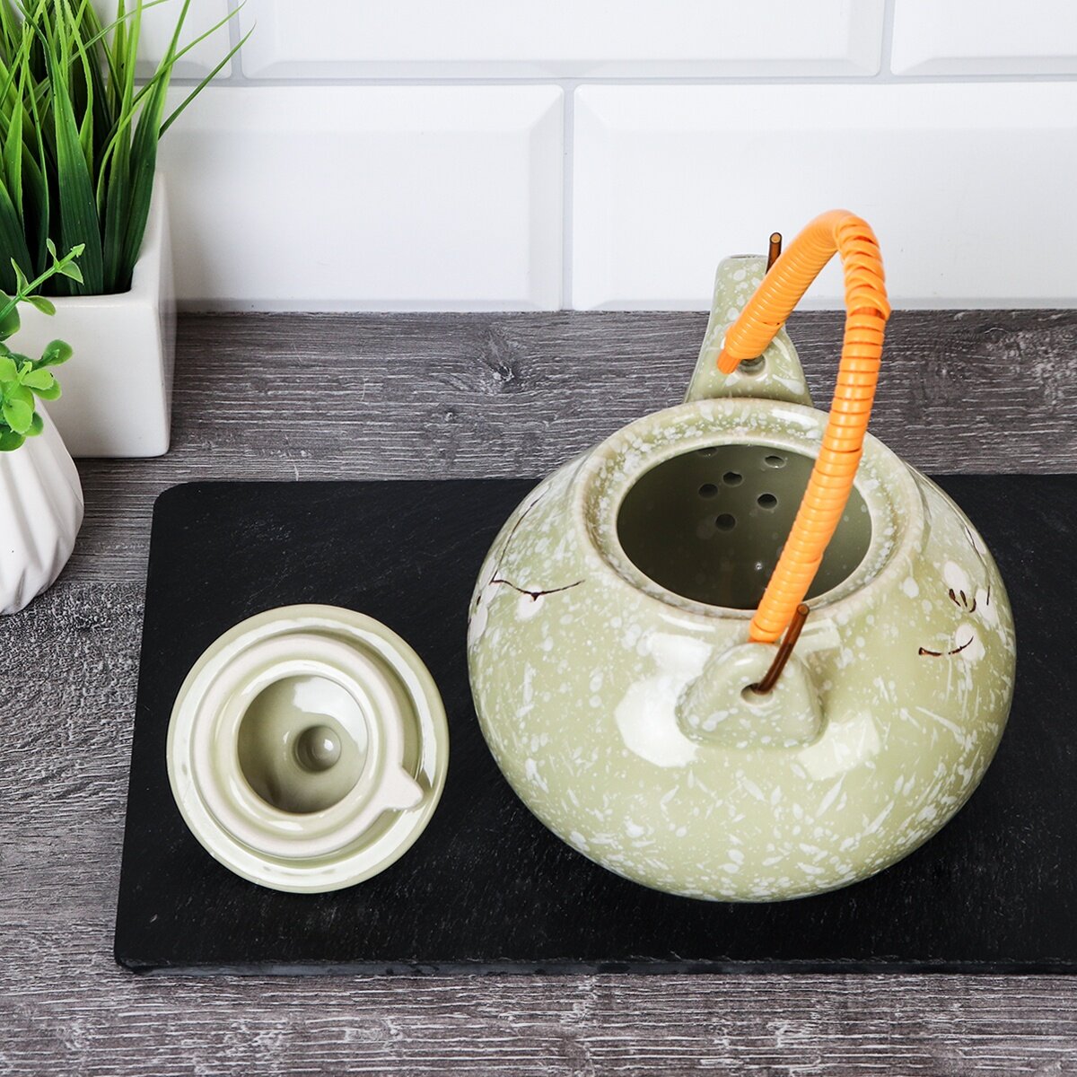Купить Чайник заварочный зеленый с рисунком (цветы) 640мл, фарфоровый
