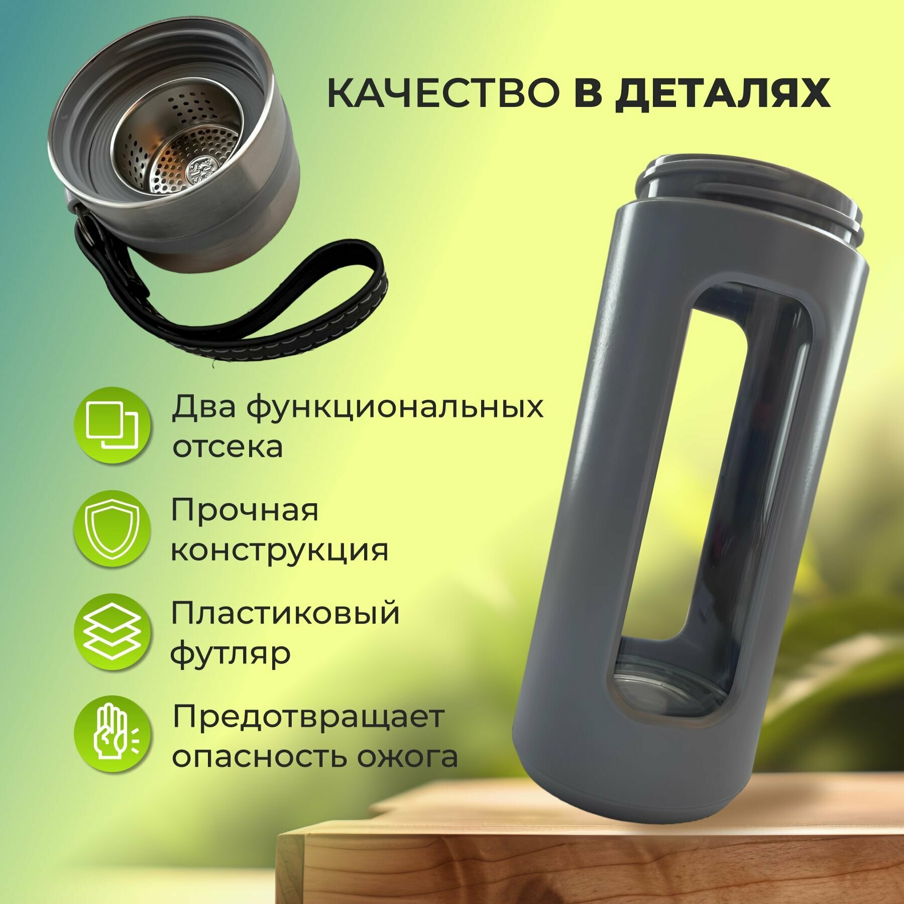 Чайник заварочный стеклянный, проливник, термос, заварочный стакан, серый, 450 мл интересное: