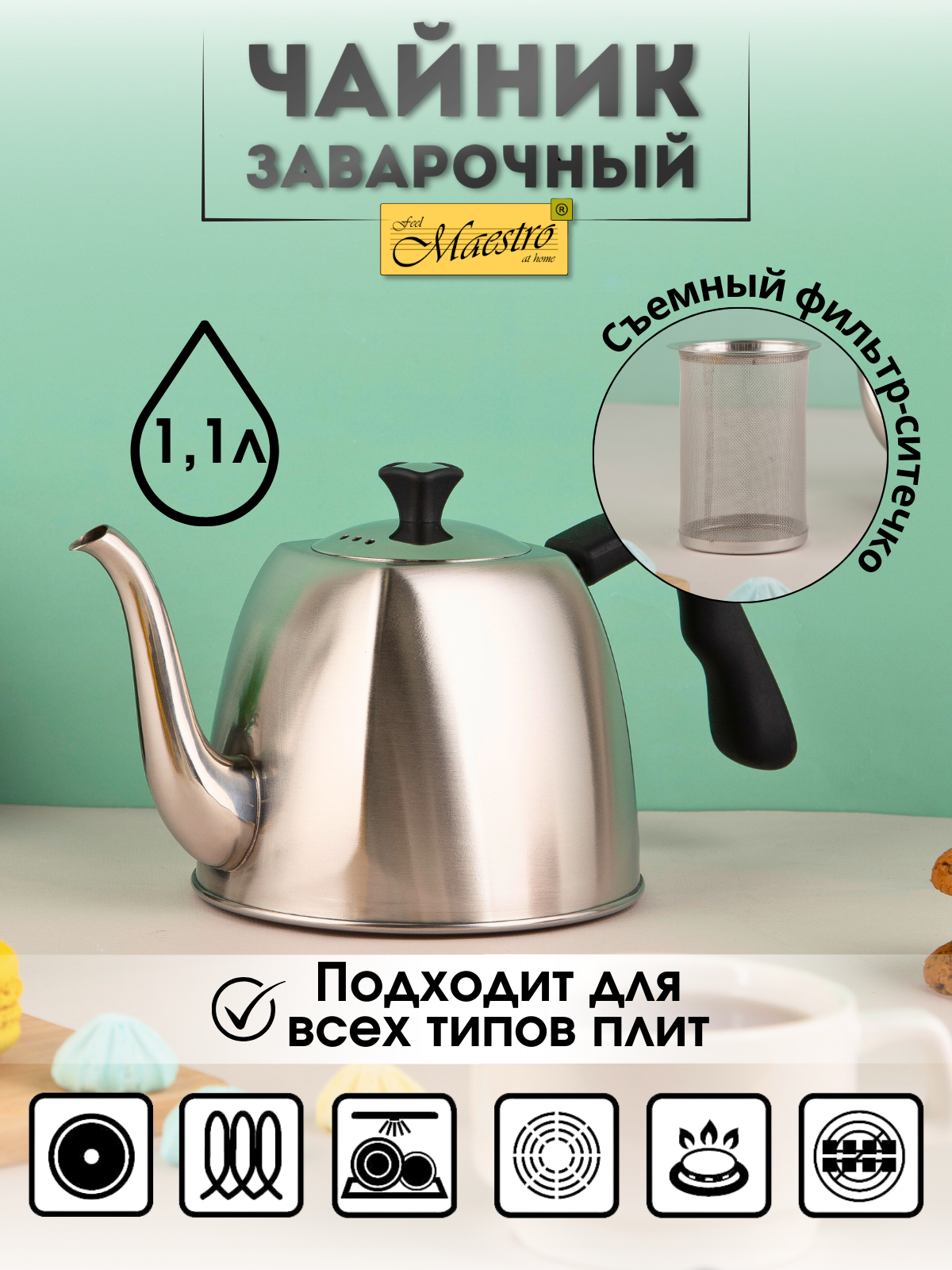Чайник заварочный Feel Maestro at Home, нержавеющая сталь, 1.1л интересное: