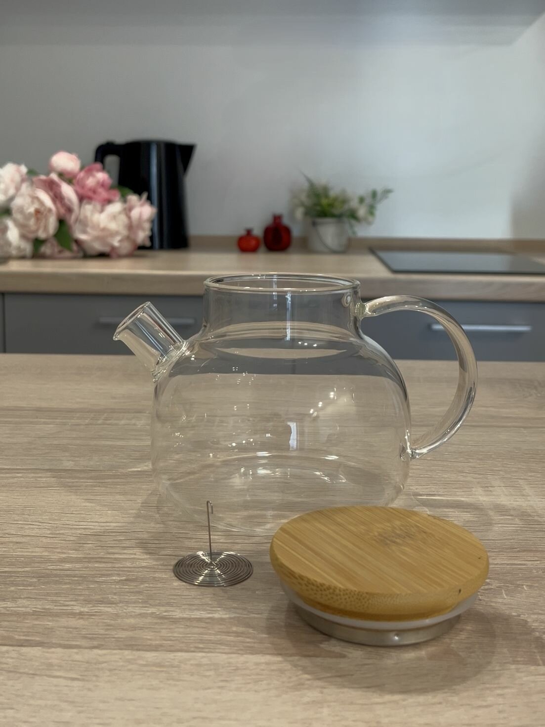 Чайник заварной стеклянный с ситечком пружинкой из нержавейки
