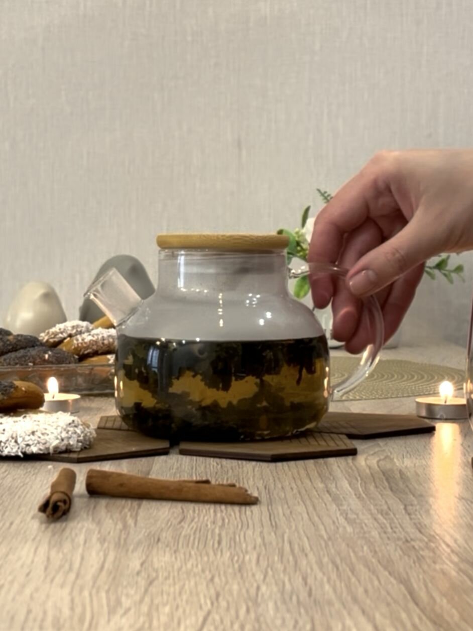 Чайник стеклянный заварной 600мл с ситечком из нержавеющей стали.