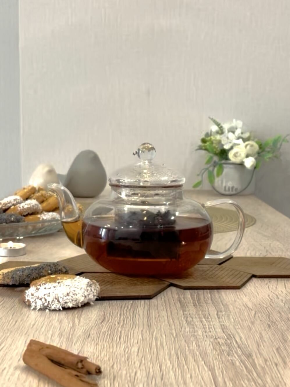 Чайник стеклянный заварной 600мл с ситечком из нержавеющей стали.