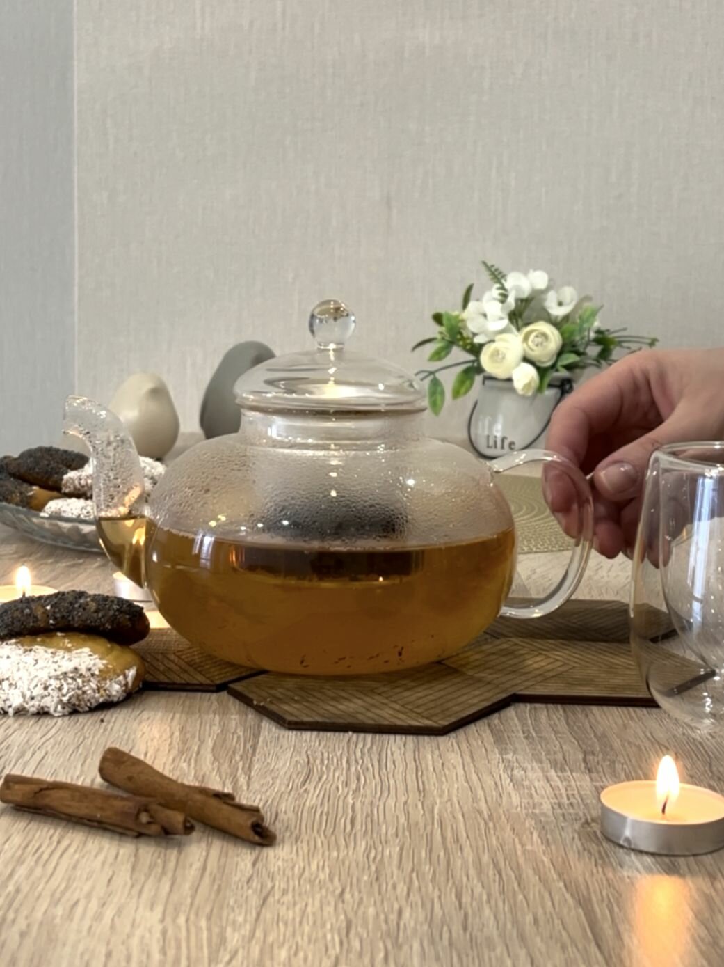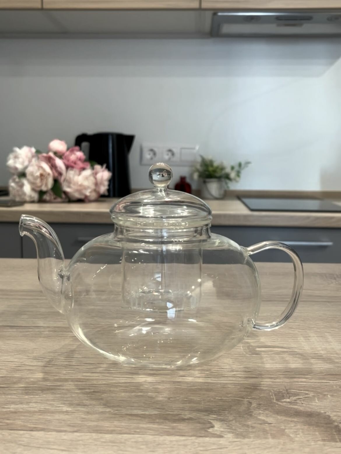 Чайник стеклянный заварной 600мл с ситечком из нержавеющей стали.