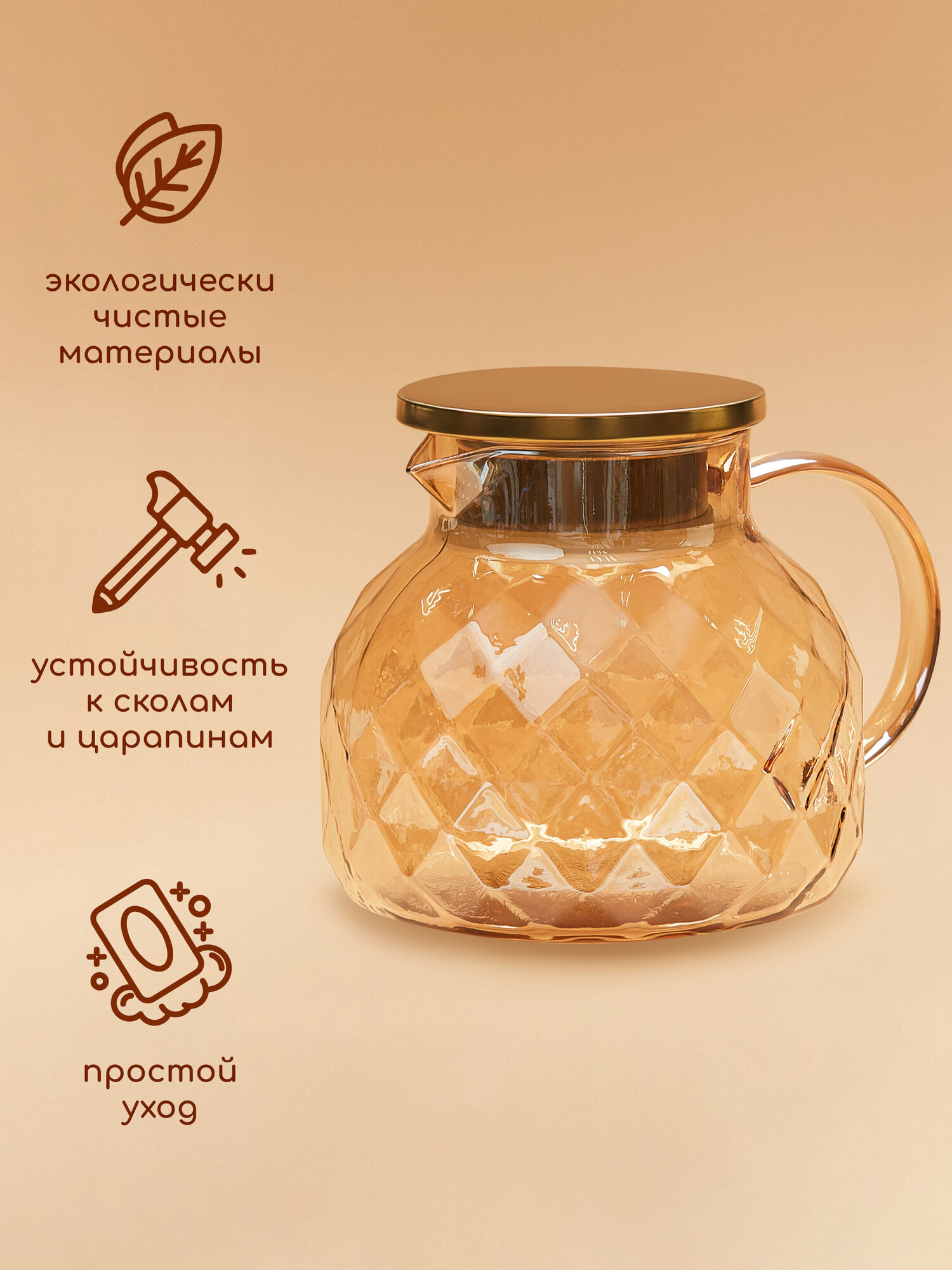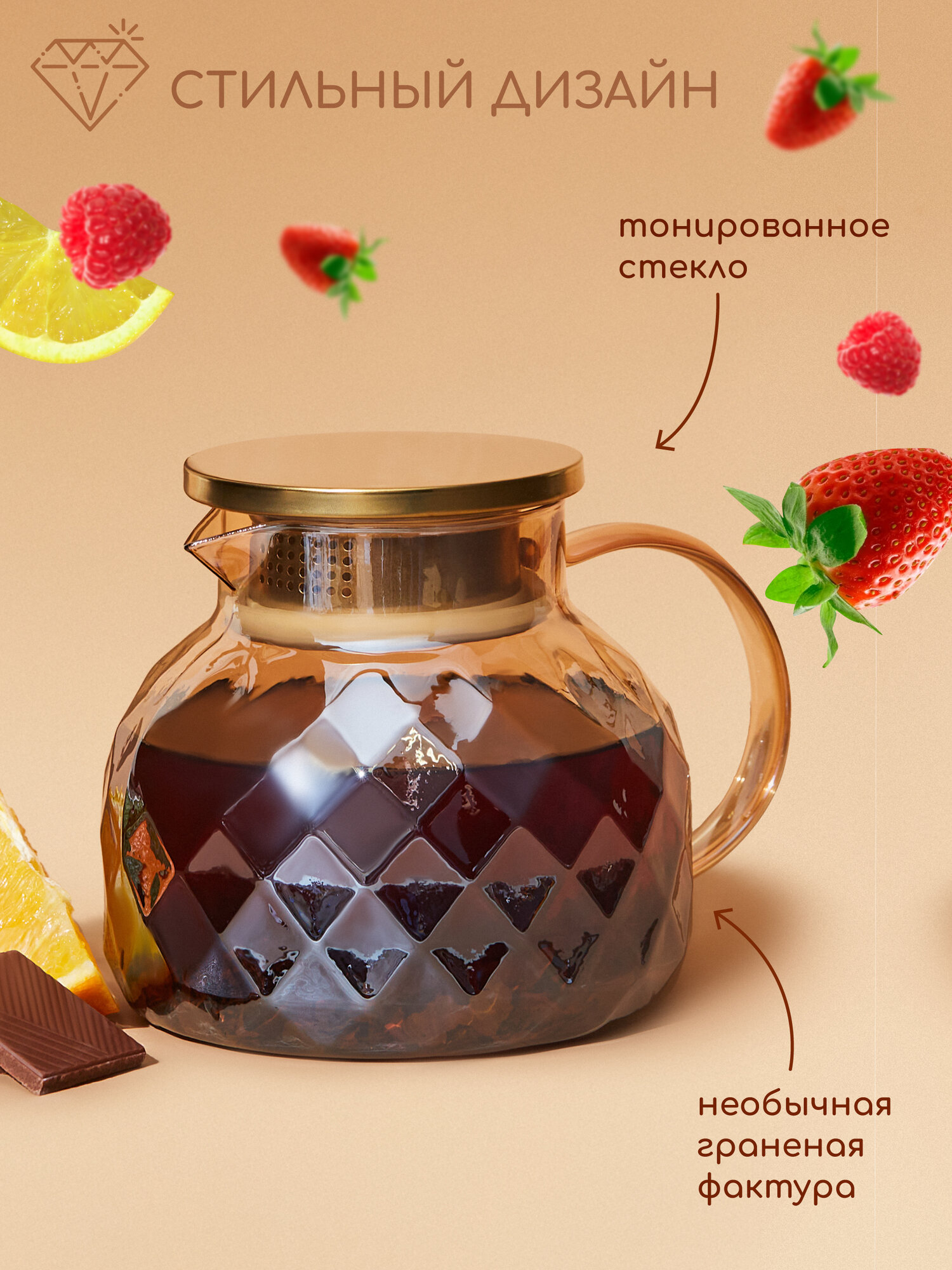 Заварник стеклянный термостойкий с крышкой из нержавеющей стали с фильтром объемом 800мл золотистый интересное: