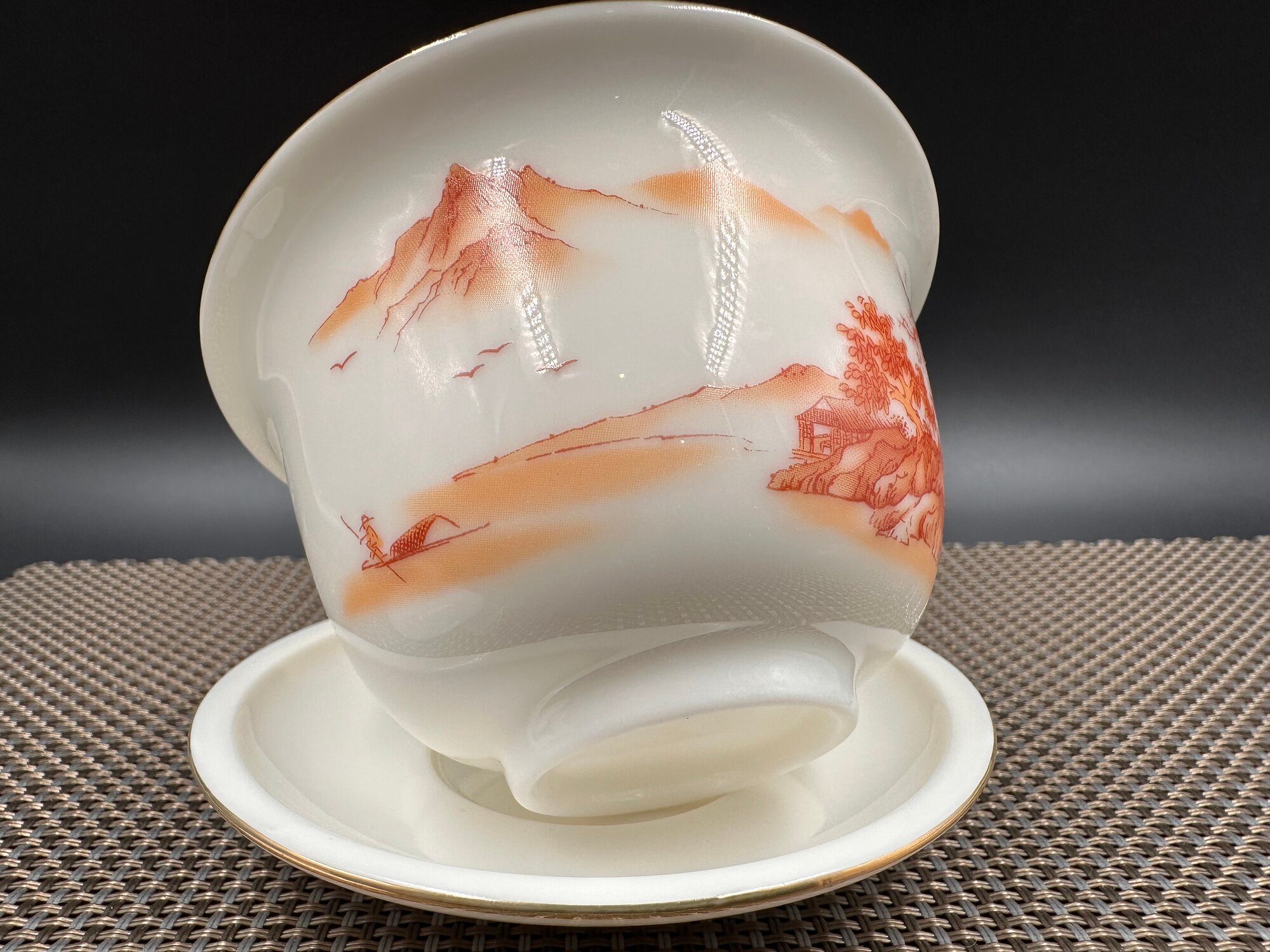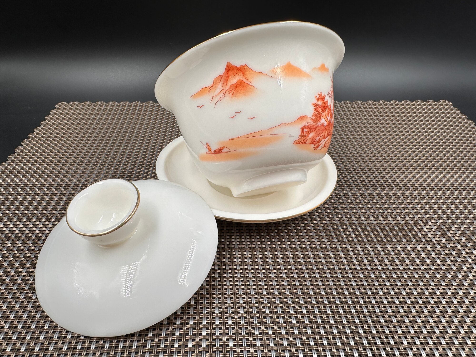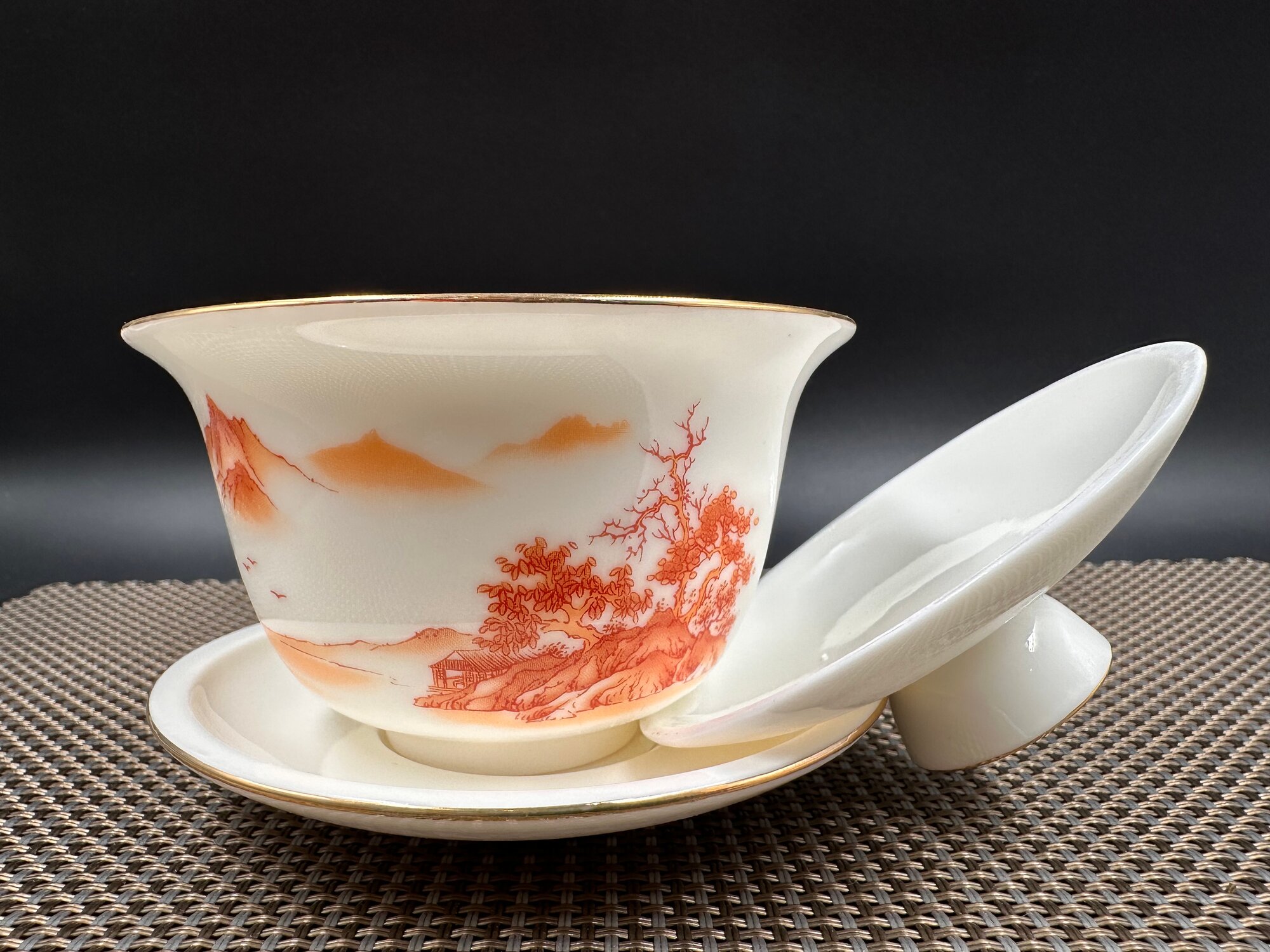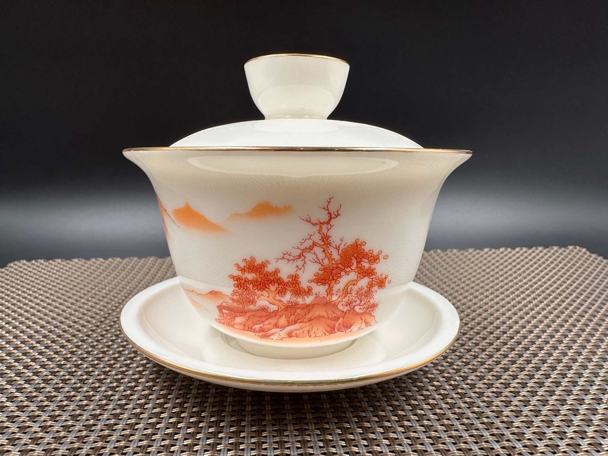 Гайвань фарфоровая "Пейзаж в красно-кирпичных тонах", 180мл. интересное: