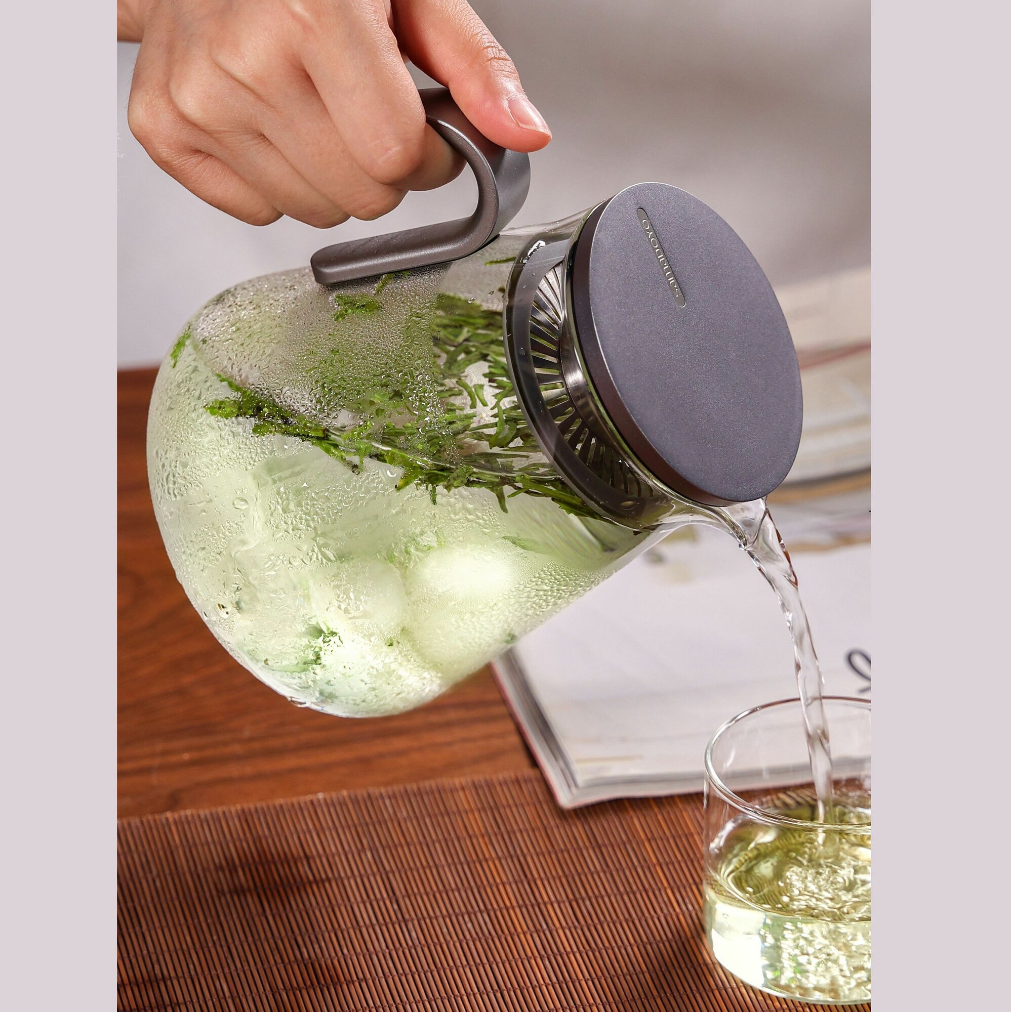 Чайник SAMADOYO Stainless Steel Infuser, 600 мл, боросиликатное стекло, бамбук, прозрачный (S'092)