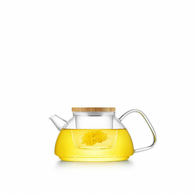 Чайник стеклянный заварочный с крышкой из бамбука 900мл SAMADOYO