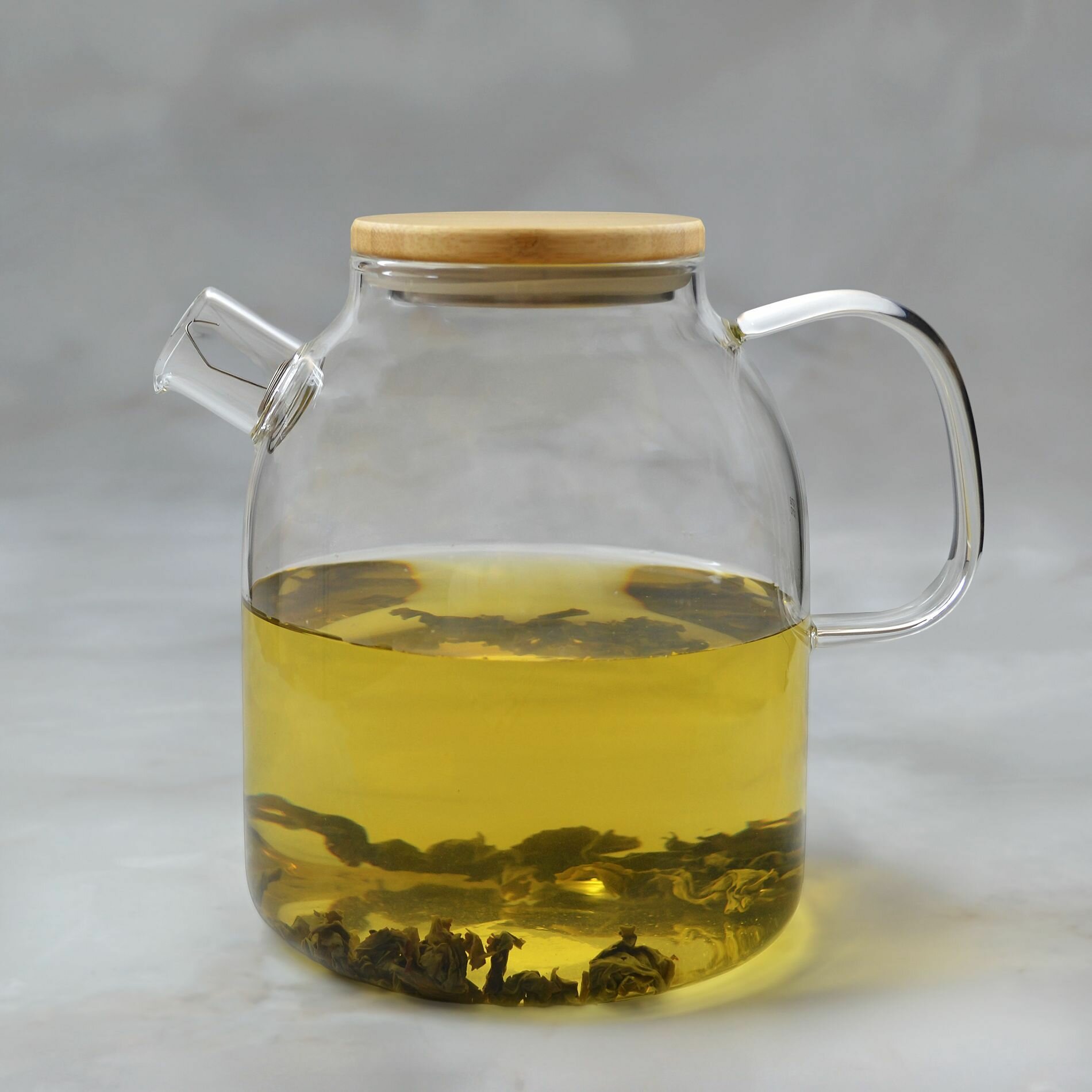 Чайник стеклянный заварочный с крышкой из бамбука 900мл SAMADOYO