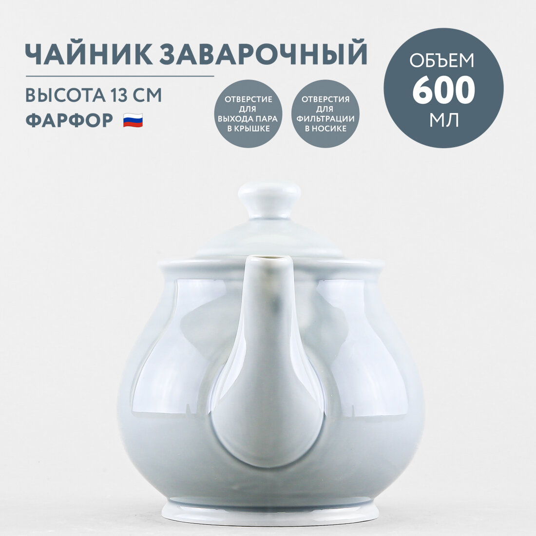 Купить Чайник заварочный 600 мл Башкирский фарфор Принц Акварель (светло-серый)