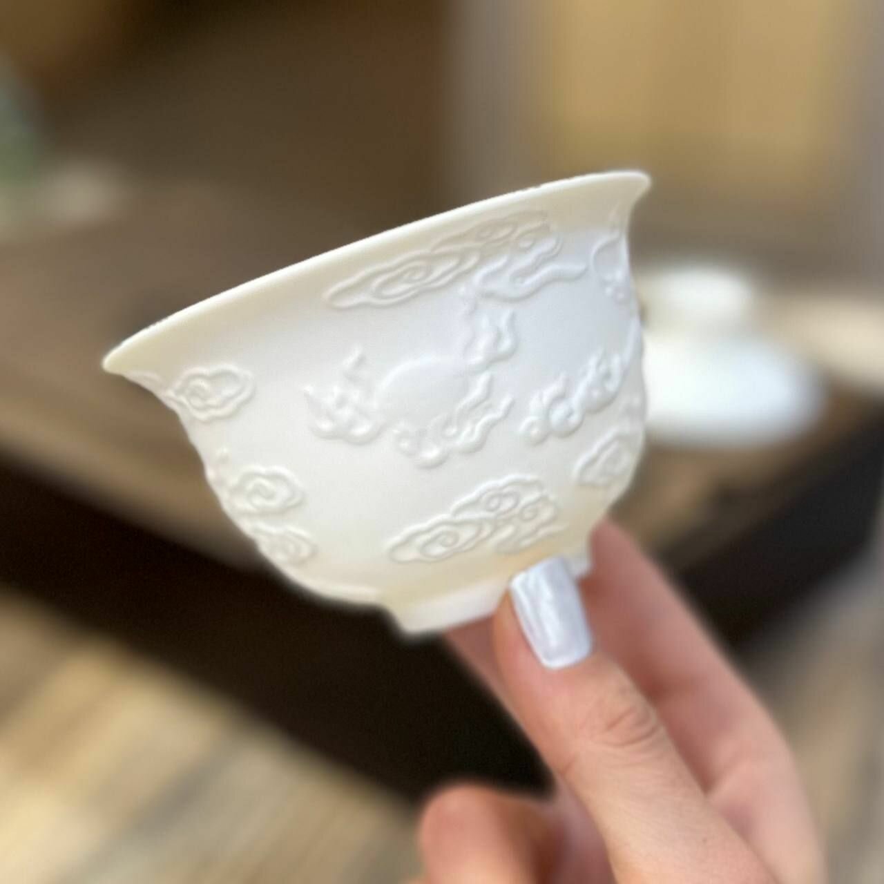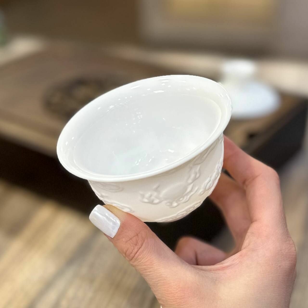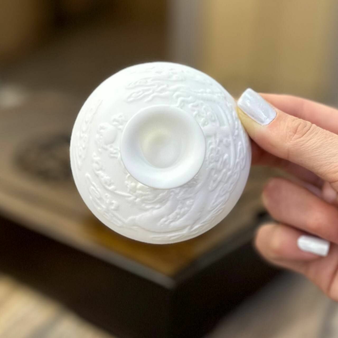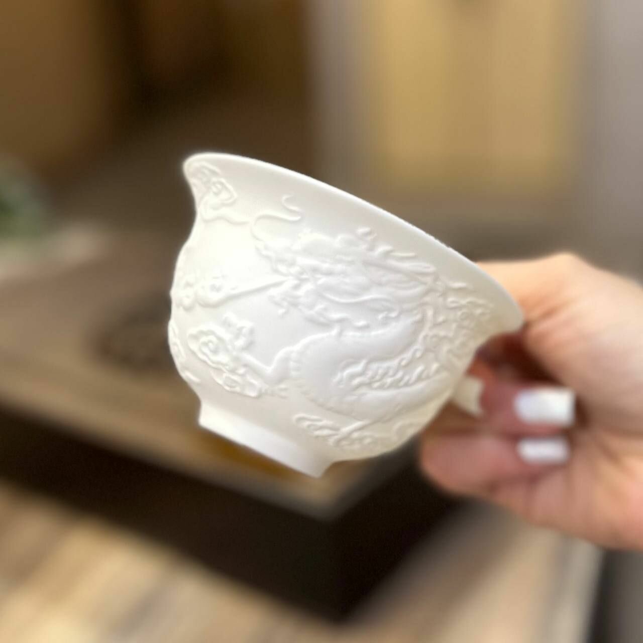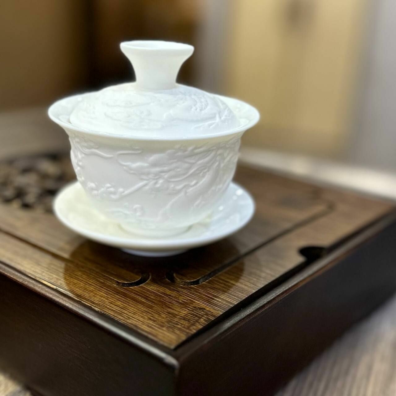 Гайвань "Дракон", 150 мл, чайный сервиз, белый, цельный, керамический чайный сервиз интересное: