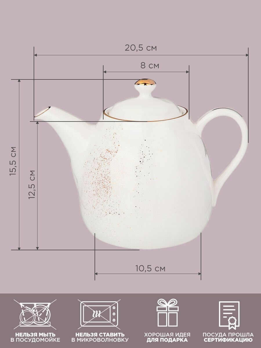 Чайник заварочный Bronco "Gold", фарфоровый, с крышкой, 1000 мл интересное: