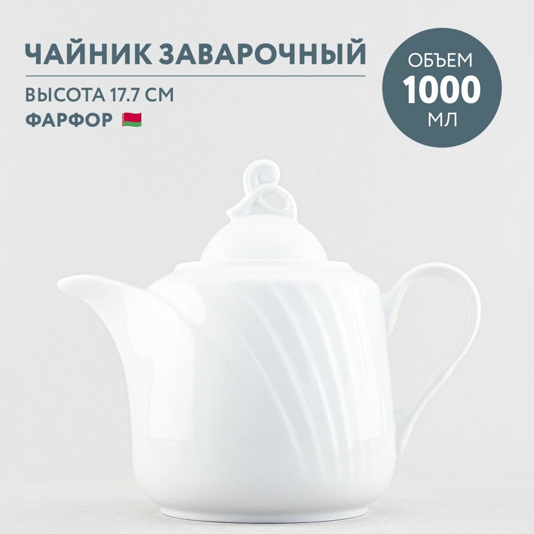 Чайник заварочный фарфоровый 1000 мл Добрушский фарфор Белый интересное: