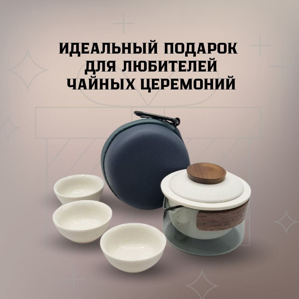 Гайвань-чайник - дорожный чайный набор, цвет Слоновая Кость, магазин Зелёный Чёрный интересное: