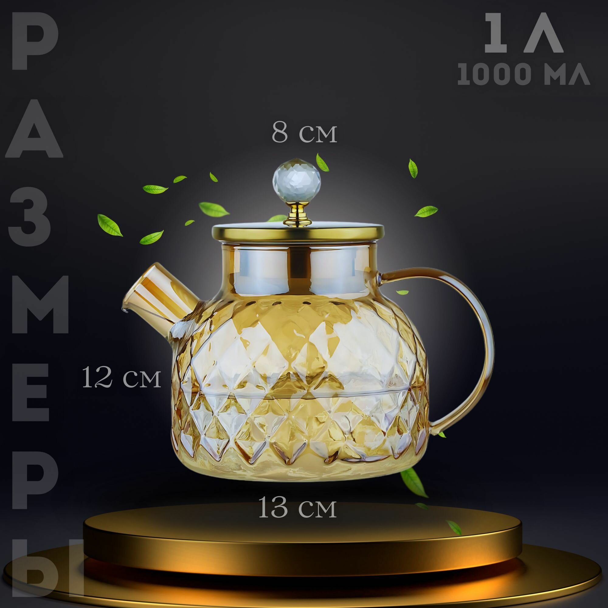 Чайник заварочный, с фильтром в носике, 1л, стекло, золотистый, прозрачный интересное: