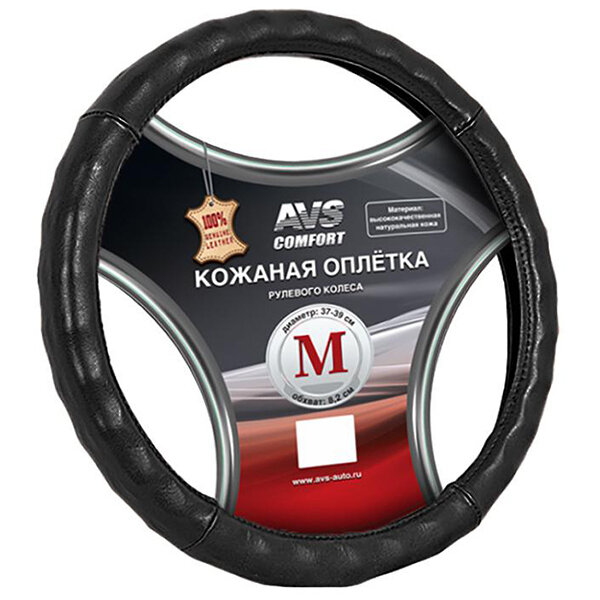 Купить Оплетка на руль (размер M, черный) (натуральная кожа) AVS GL-665M-B