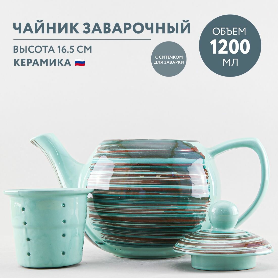 Купить Чайник заварочный керамический с фильтром 1200 мл Борисовская керамика Скандинавия